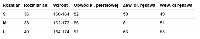 Tabela rozmiarów w galerii zdjęć.