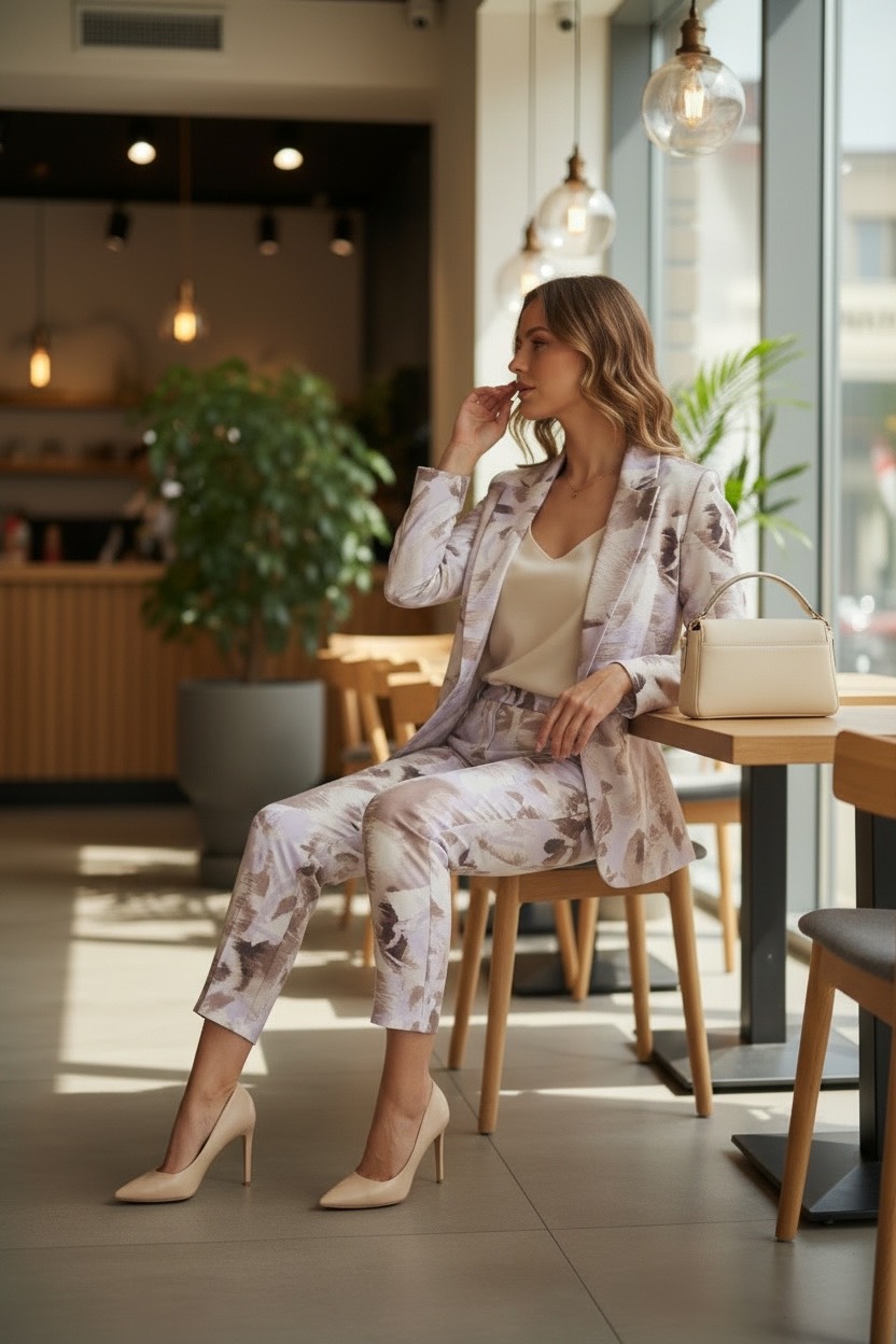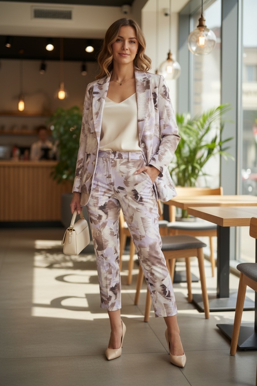 Garnitur damski dwuczęściowy w oryginalny wzór
