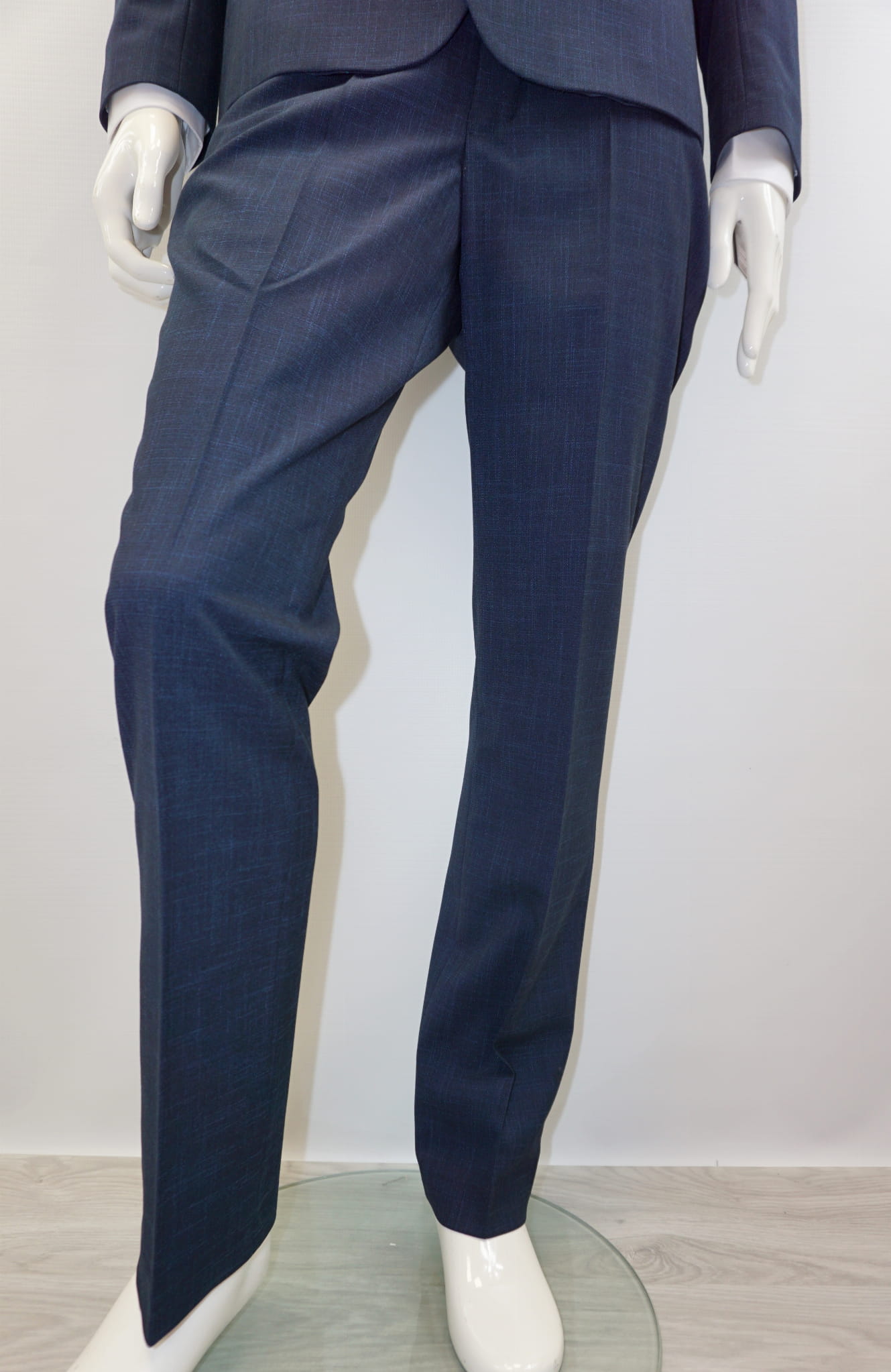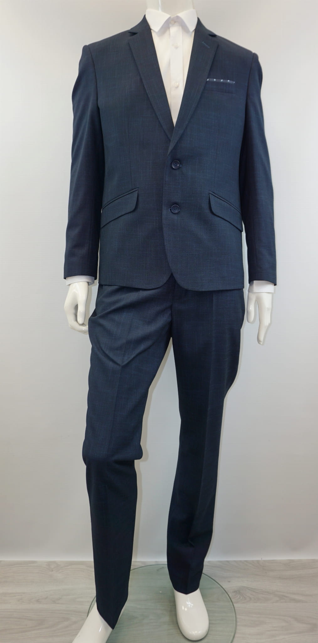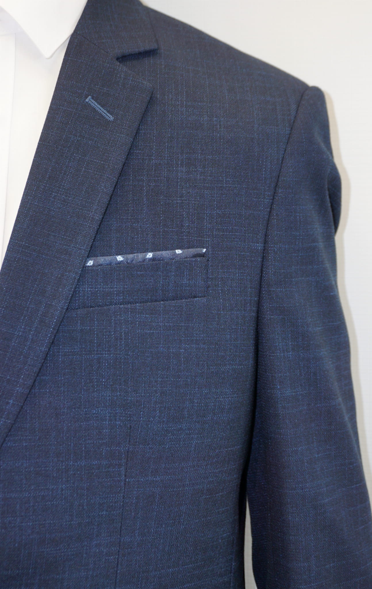 Garnitur męski dwuczęściowy slim fit w kolorze granatowym w mikro wzór.