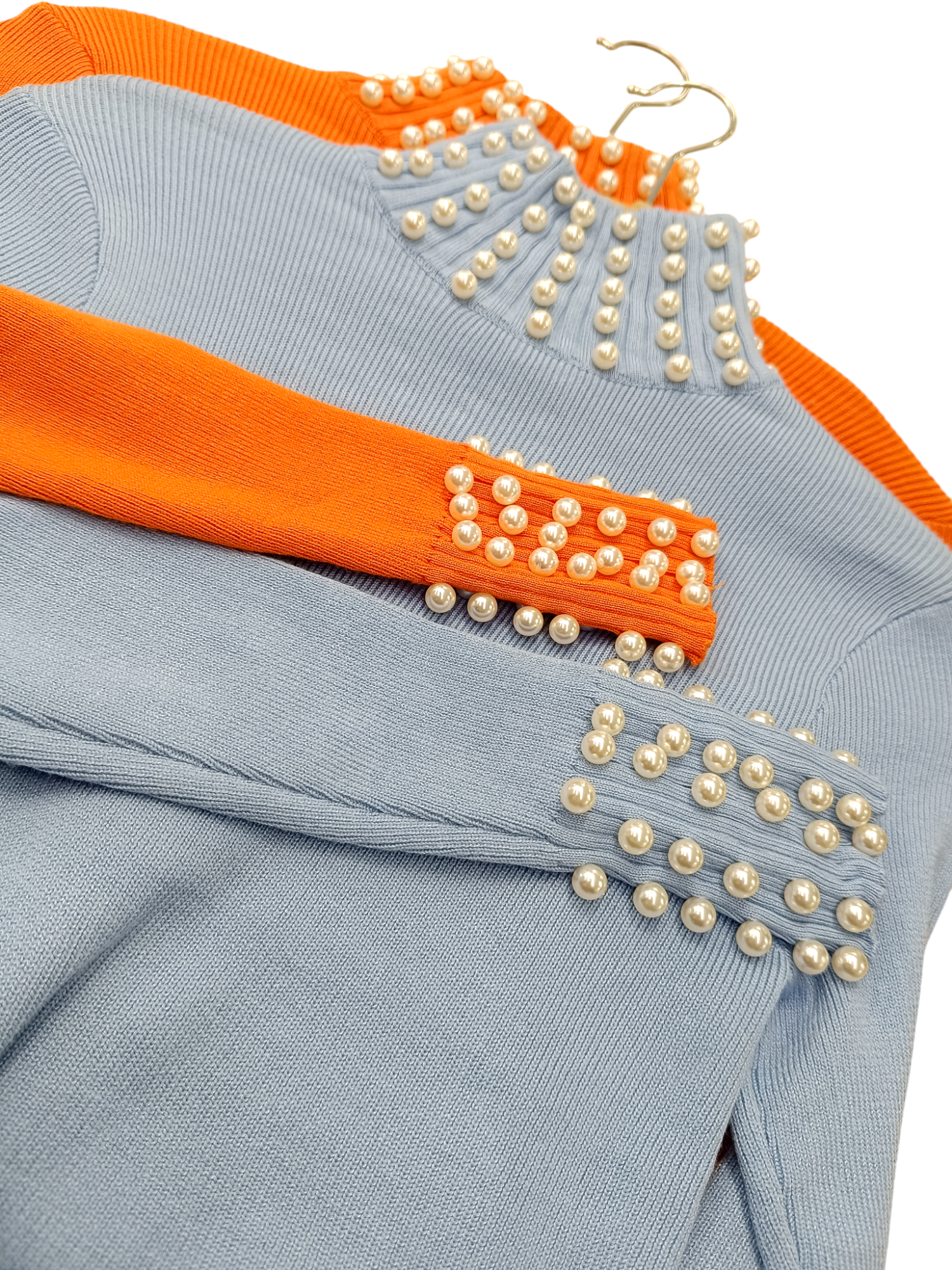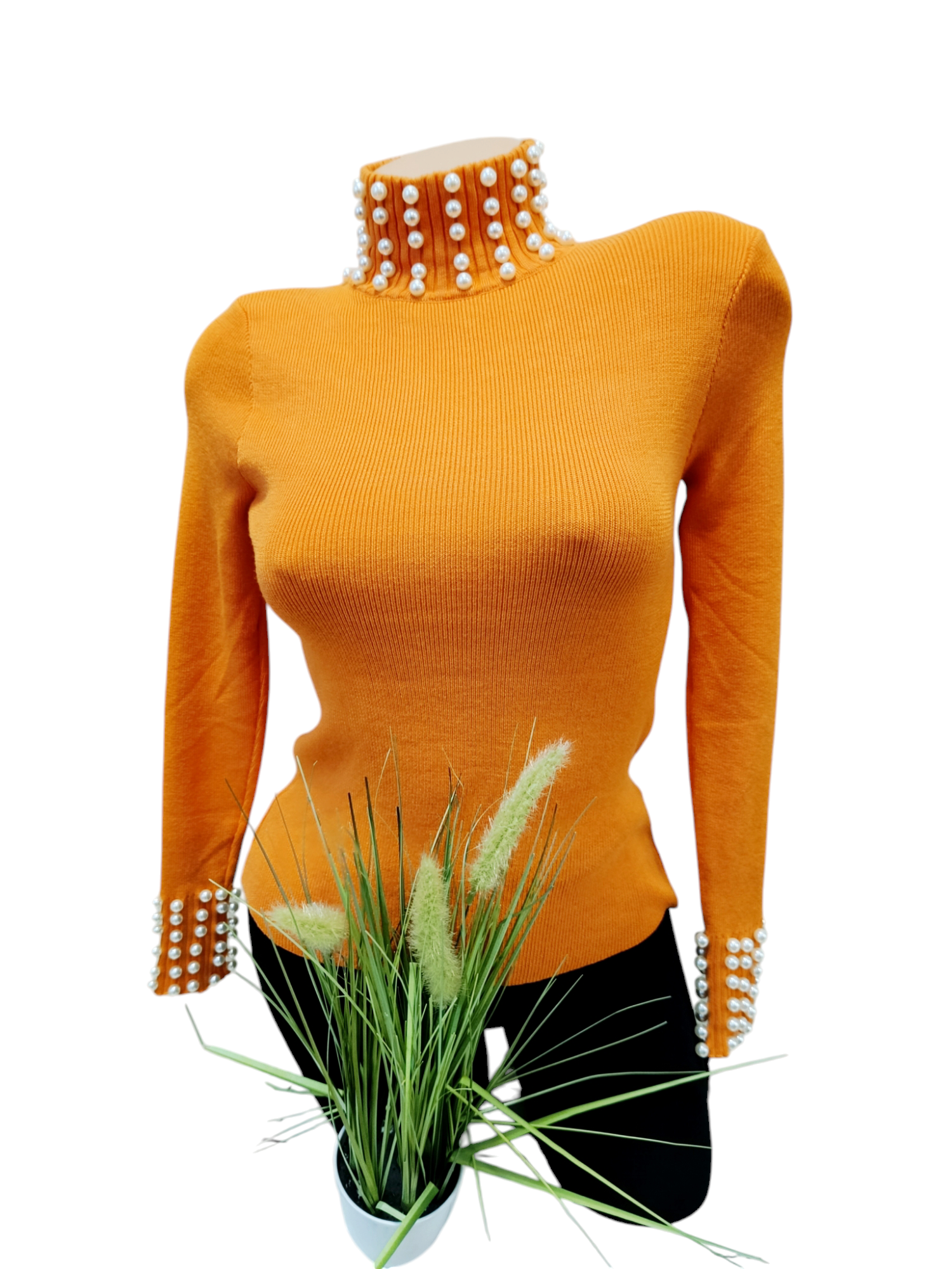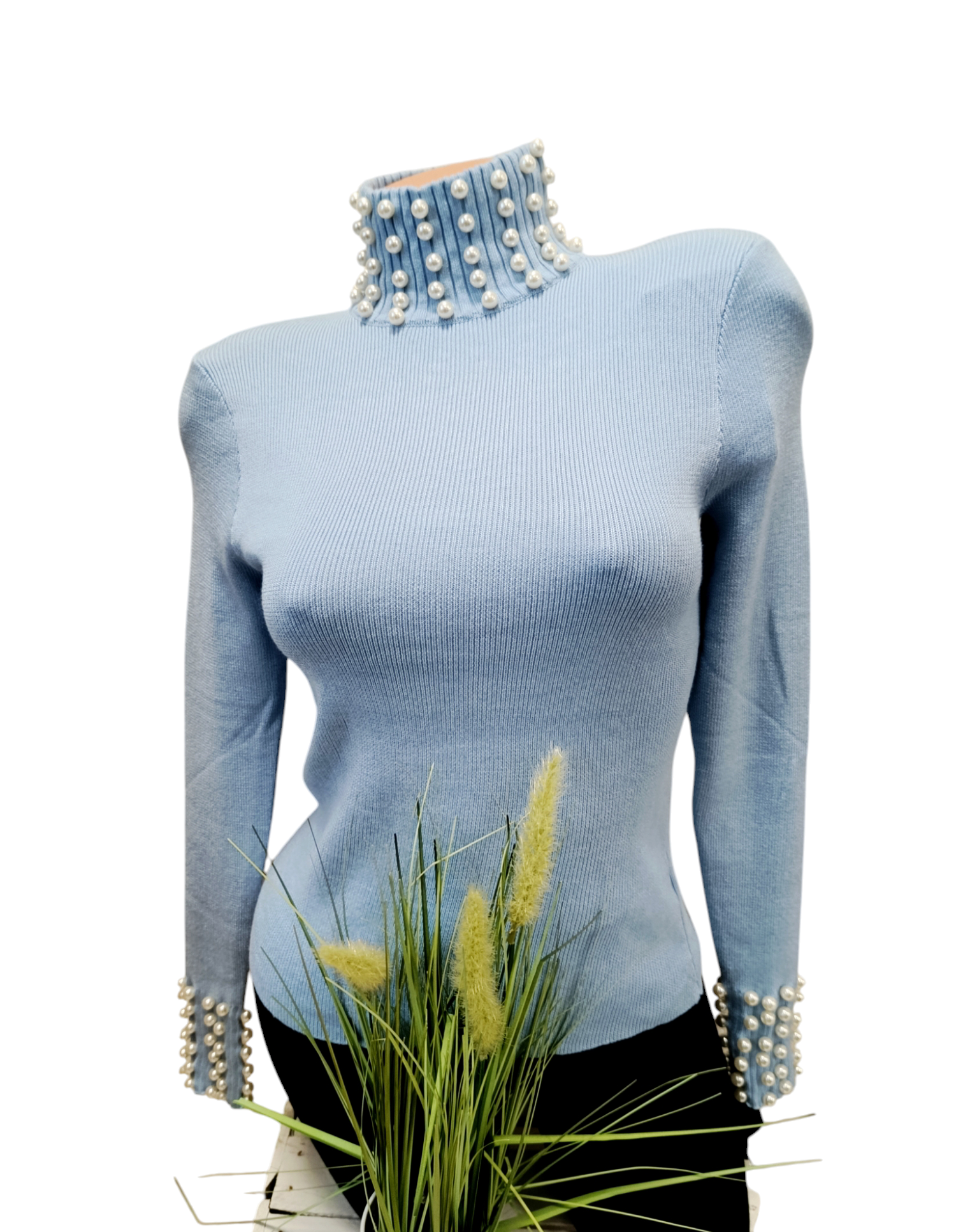 Golf damski prążek bogato zdobiony perełkami