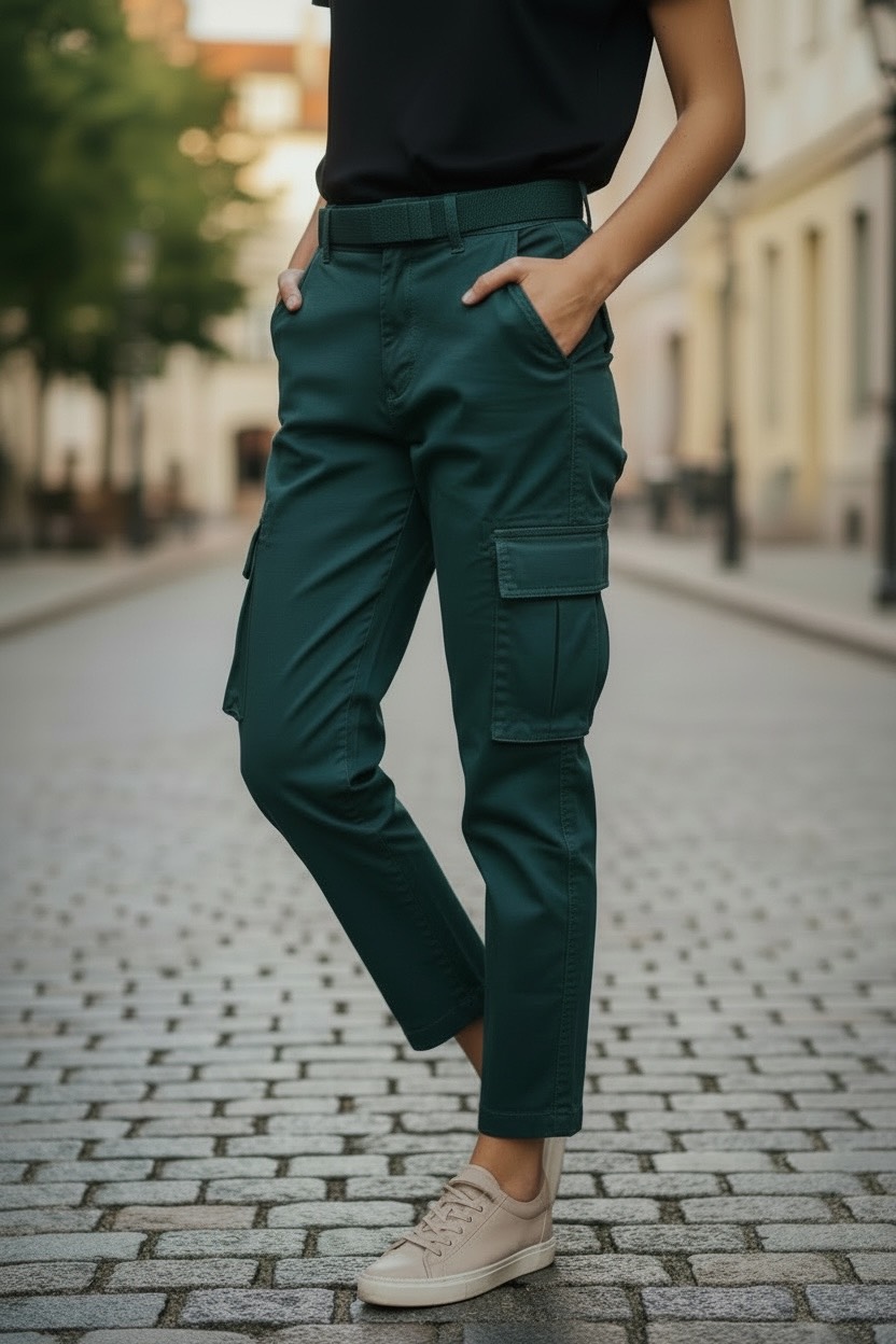 Spodnie posiadają dodatkowe kieszenie z boku nogi .