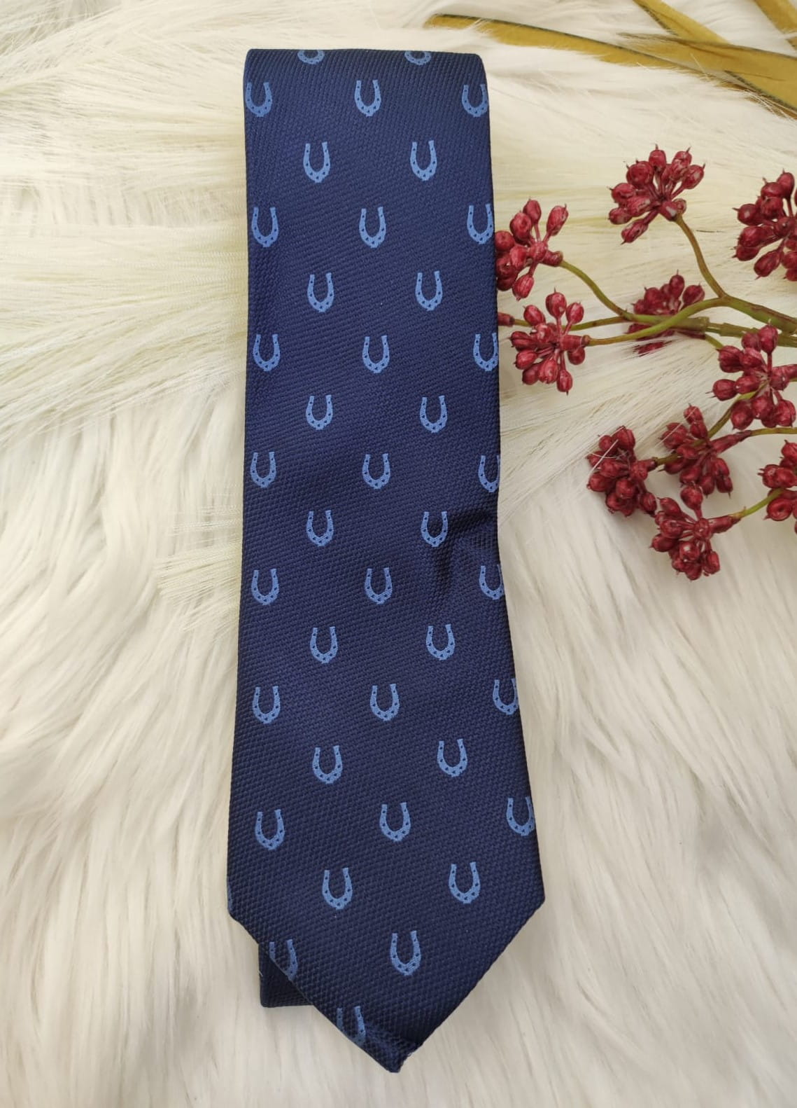 Komplet granatowy krawat+spinki do mankietów podkowa