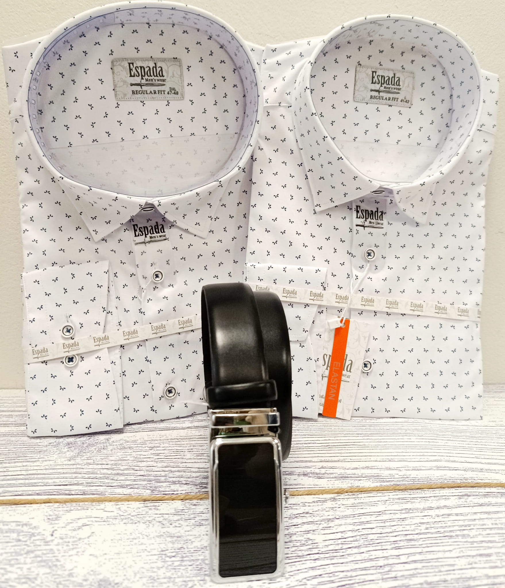 Koszula biała długi rękaw drobny wzór długi rękaw REGULAR FIT