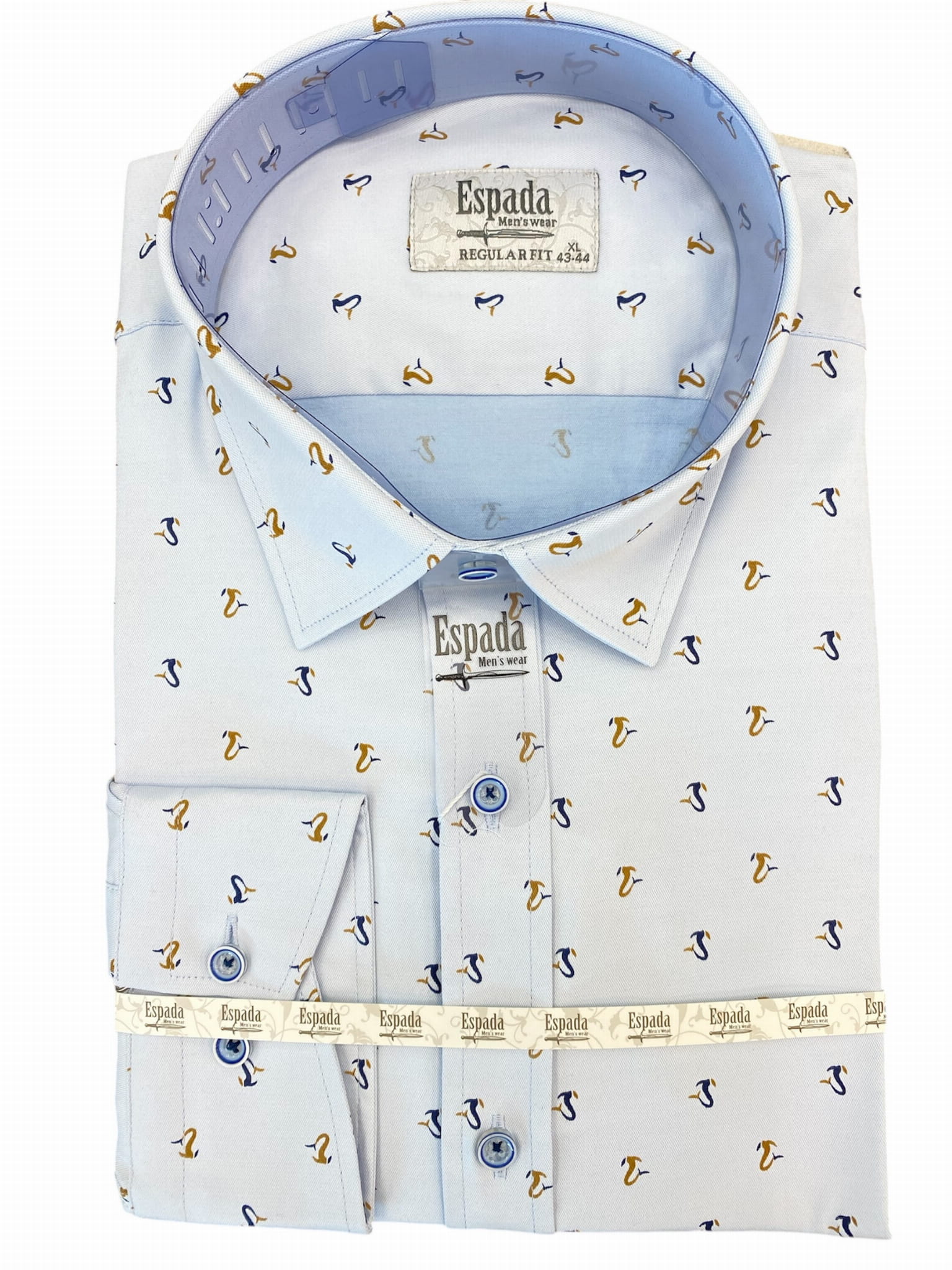 Koszula męska błękitna z długim rękawem REGULAR FIT granatowo-brązowy wzór