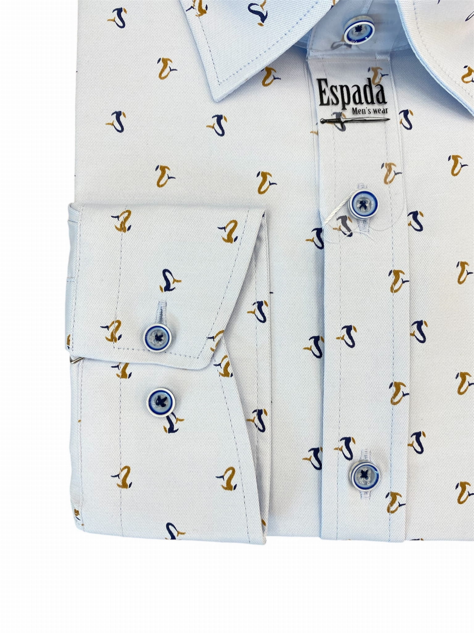 Koszula męska elegancka z długim rękawem w drobny wzór.