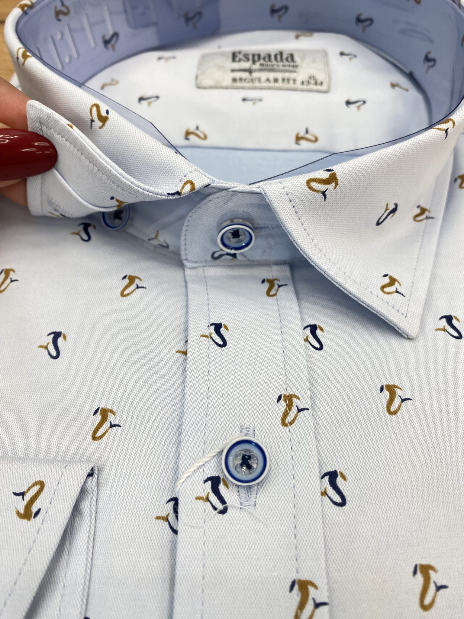 • Kołnierz typu button down z podpinanymi guziczkami od spodu do koszuli