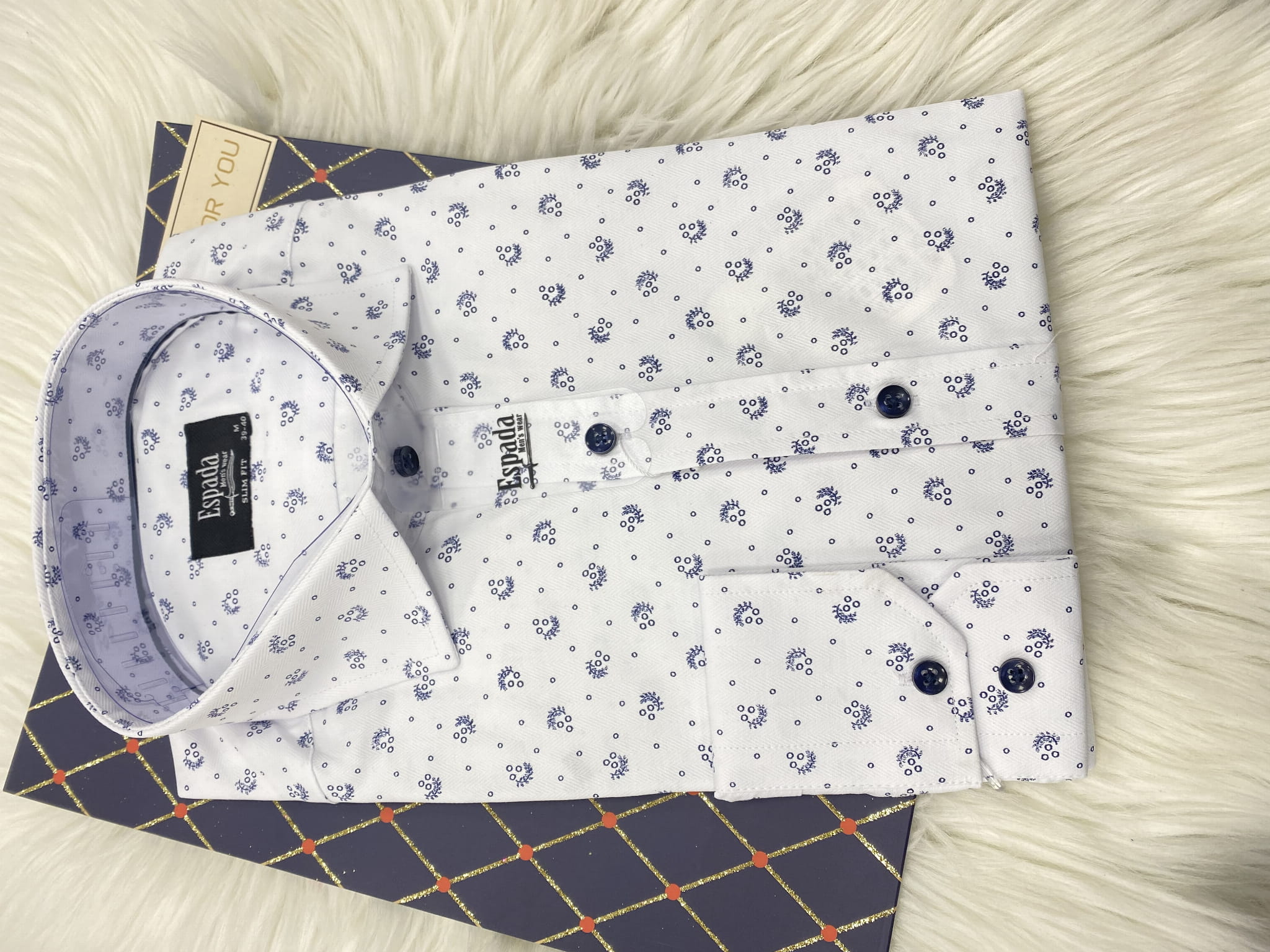 Koszula męska długi rękaw SLIM FIT wzór kółka i gałązki