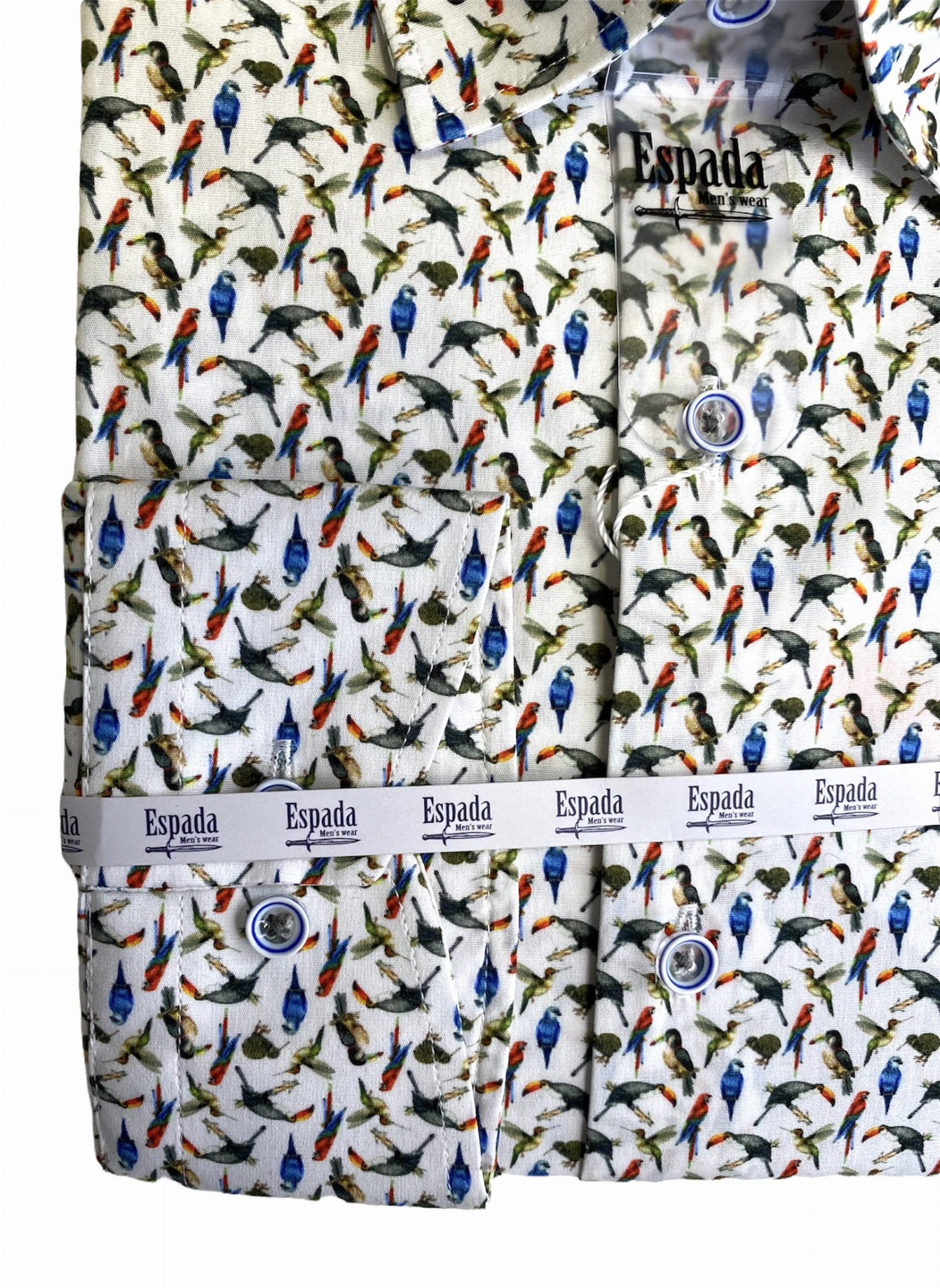 Koszula męska SLIM FIT z długim rękawem , wzór kolorowe papugi.