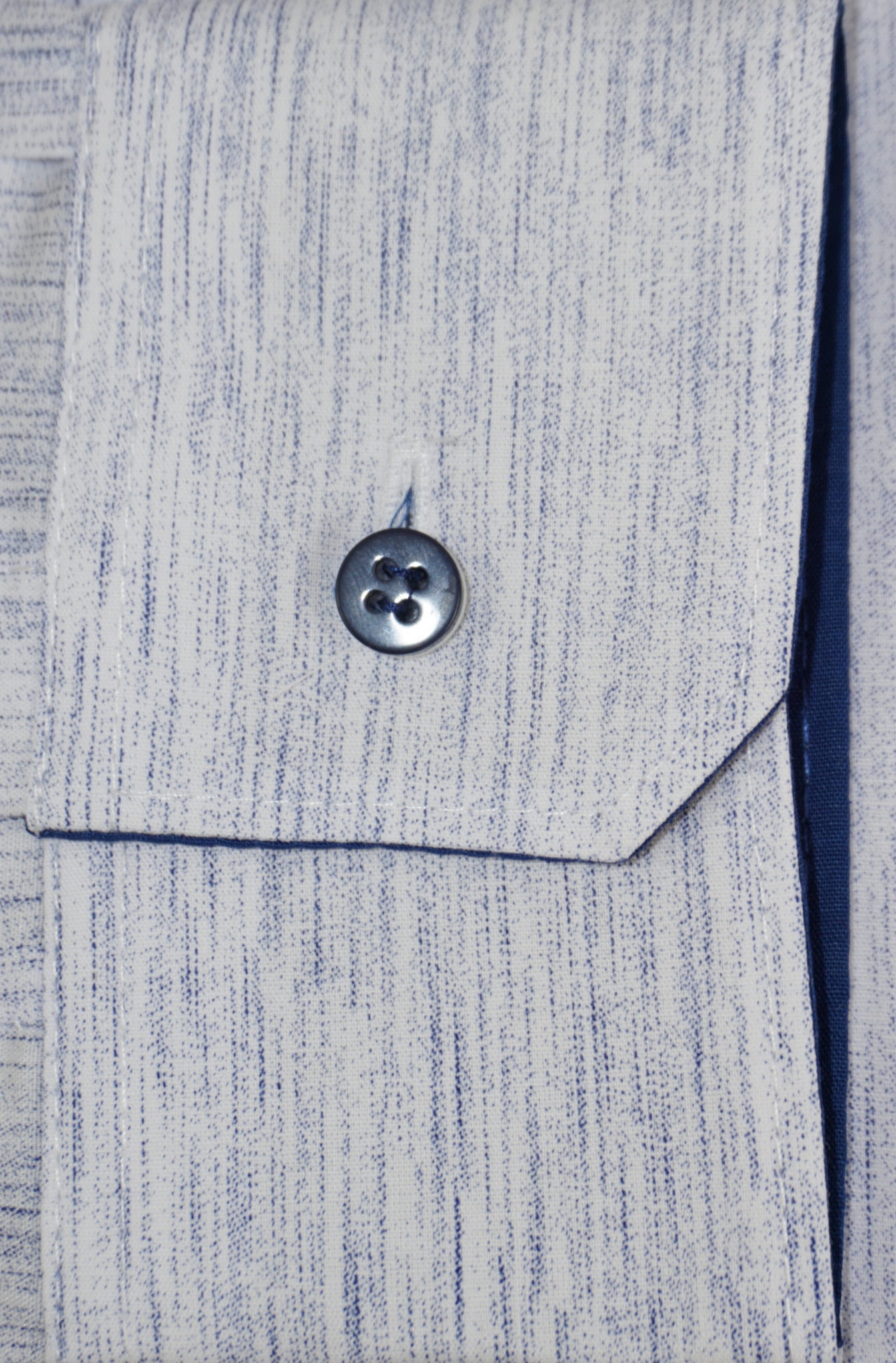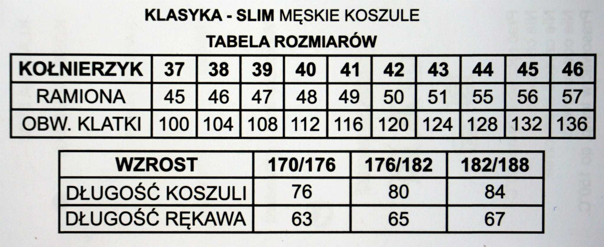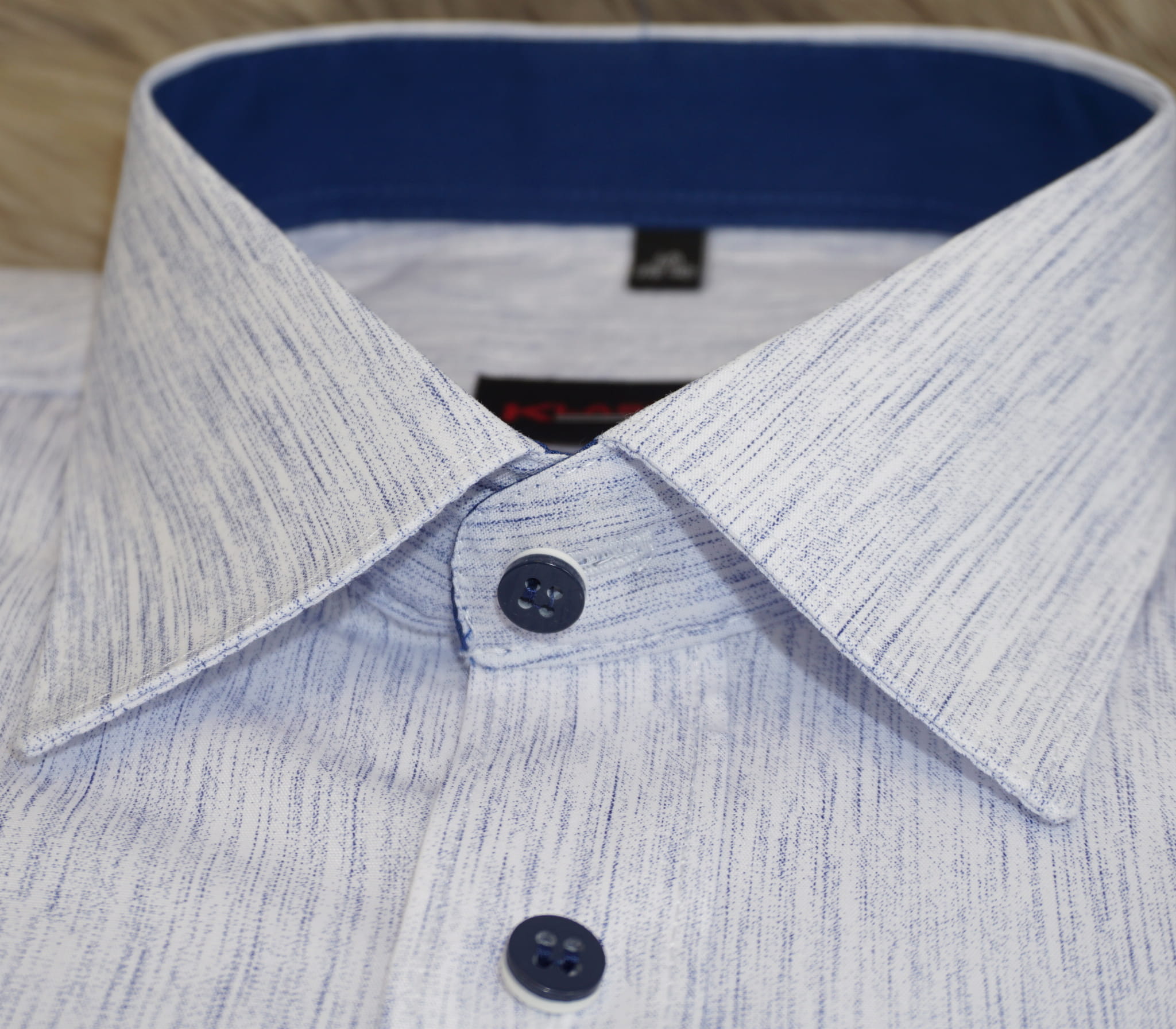 Krój dopasowany, z delikatnym taliowaniem. Całość zapinana na guziki. Kołnierz typu kent, ponadczasowy i najczęściej wybierany przez panów. Mankiety również zapinane na guziki, z możliwością regulacji obwodu. Model posiada kontrastowe wykończenie od wewnętrznej strony kołnierza i mankietów.