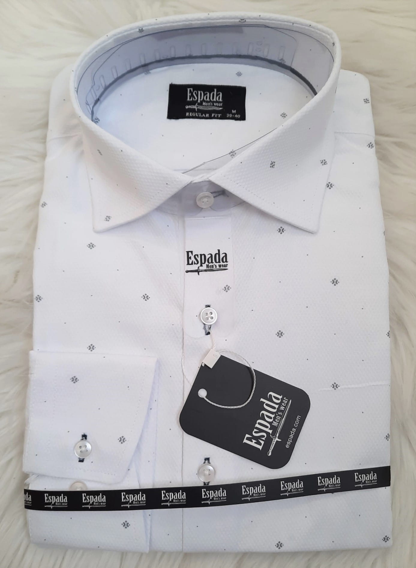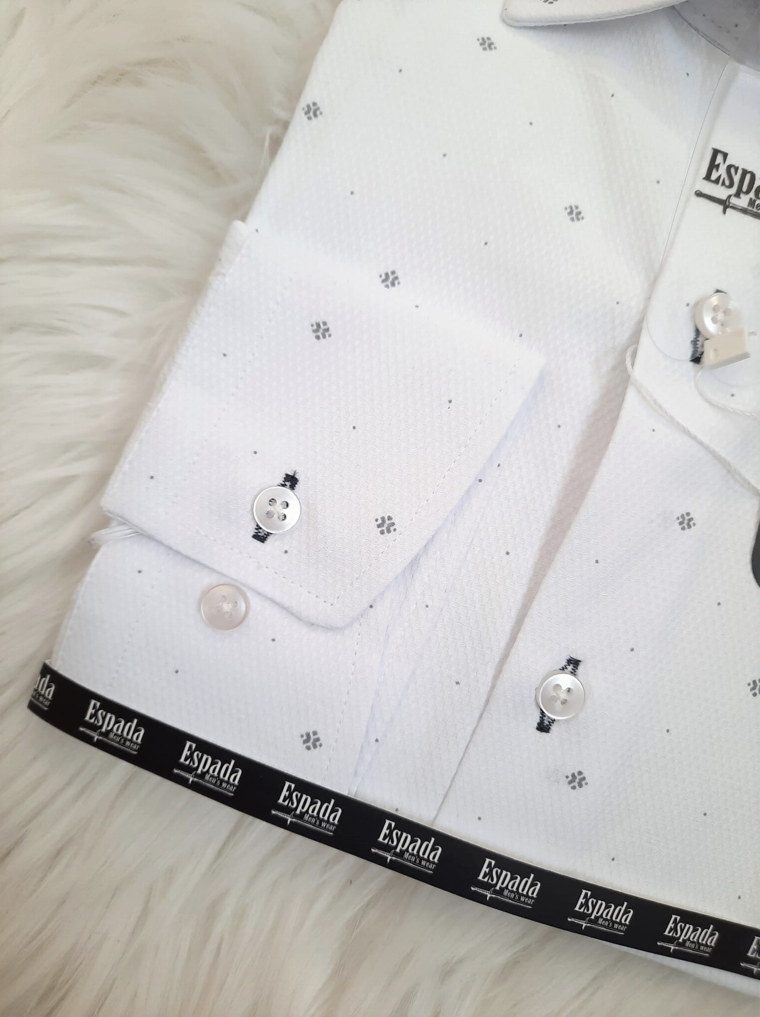 Koszula męska długi rękaw biała REGULAR FIT lekki wzór i kropki