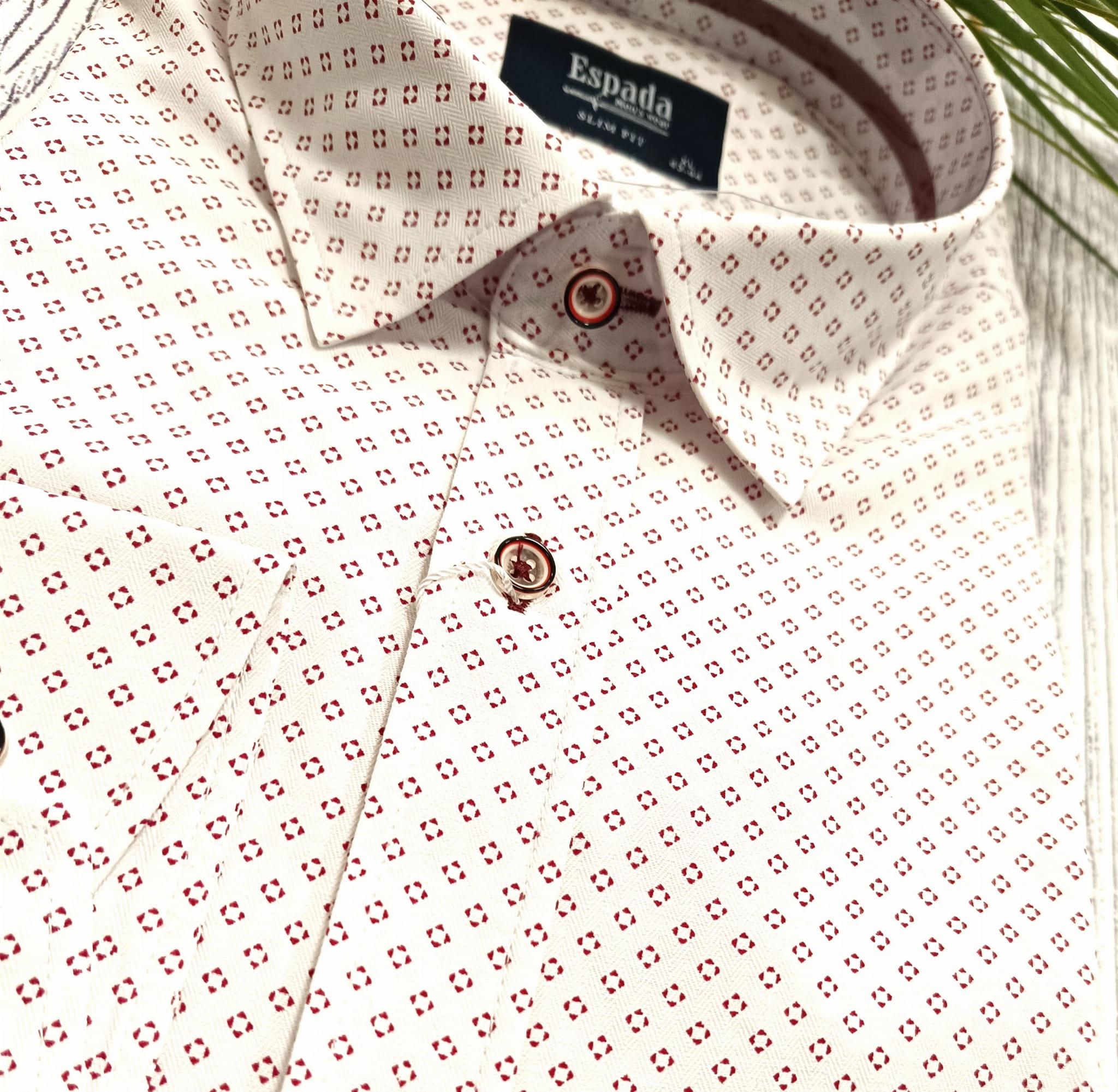 Koszula męska z długim rękawem gęsty czerwony wzór.