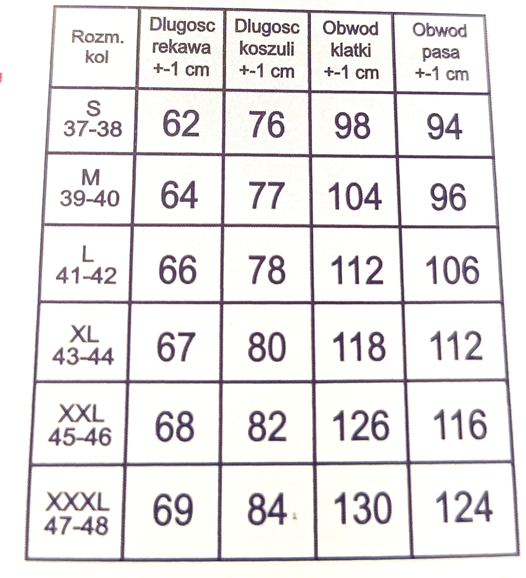 *Tabela rozmiarów w galerii zdjęć.
