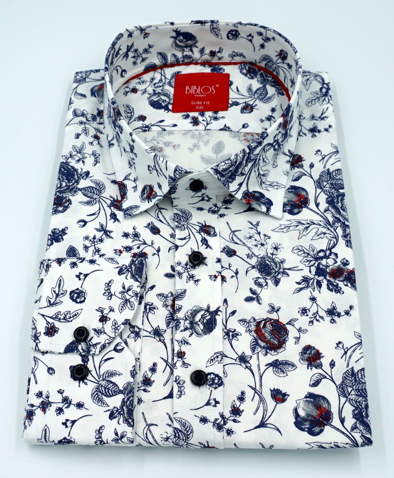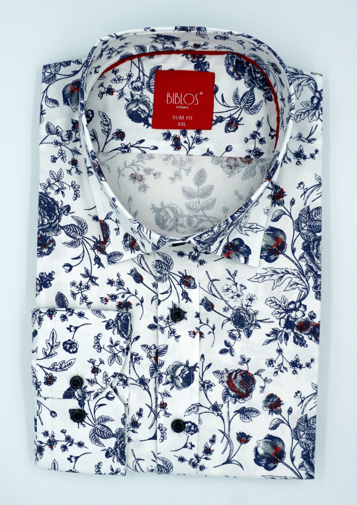 Koszula męska SLIM FIT z długim rękawem w róże.