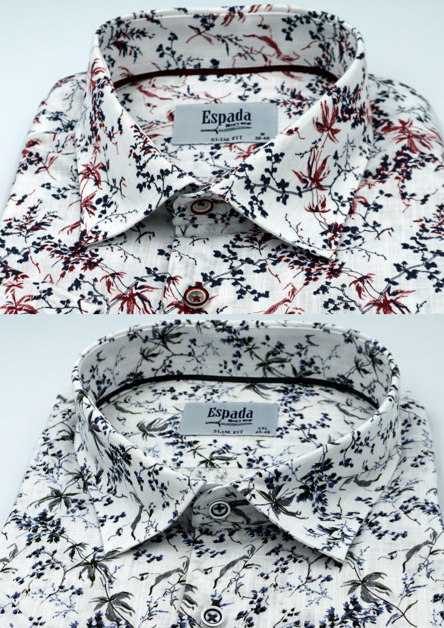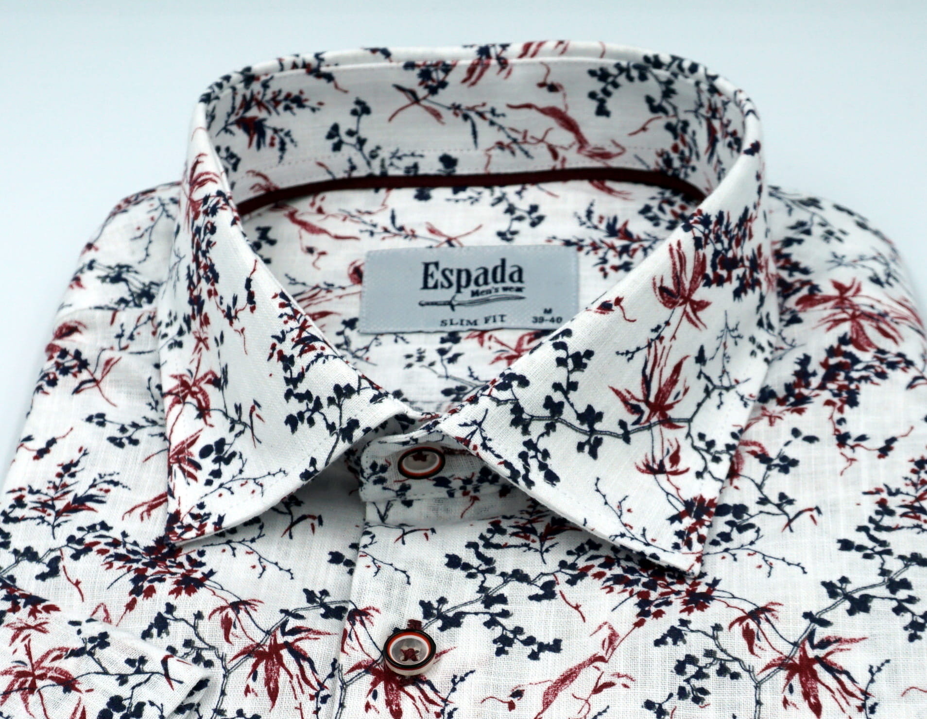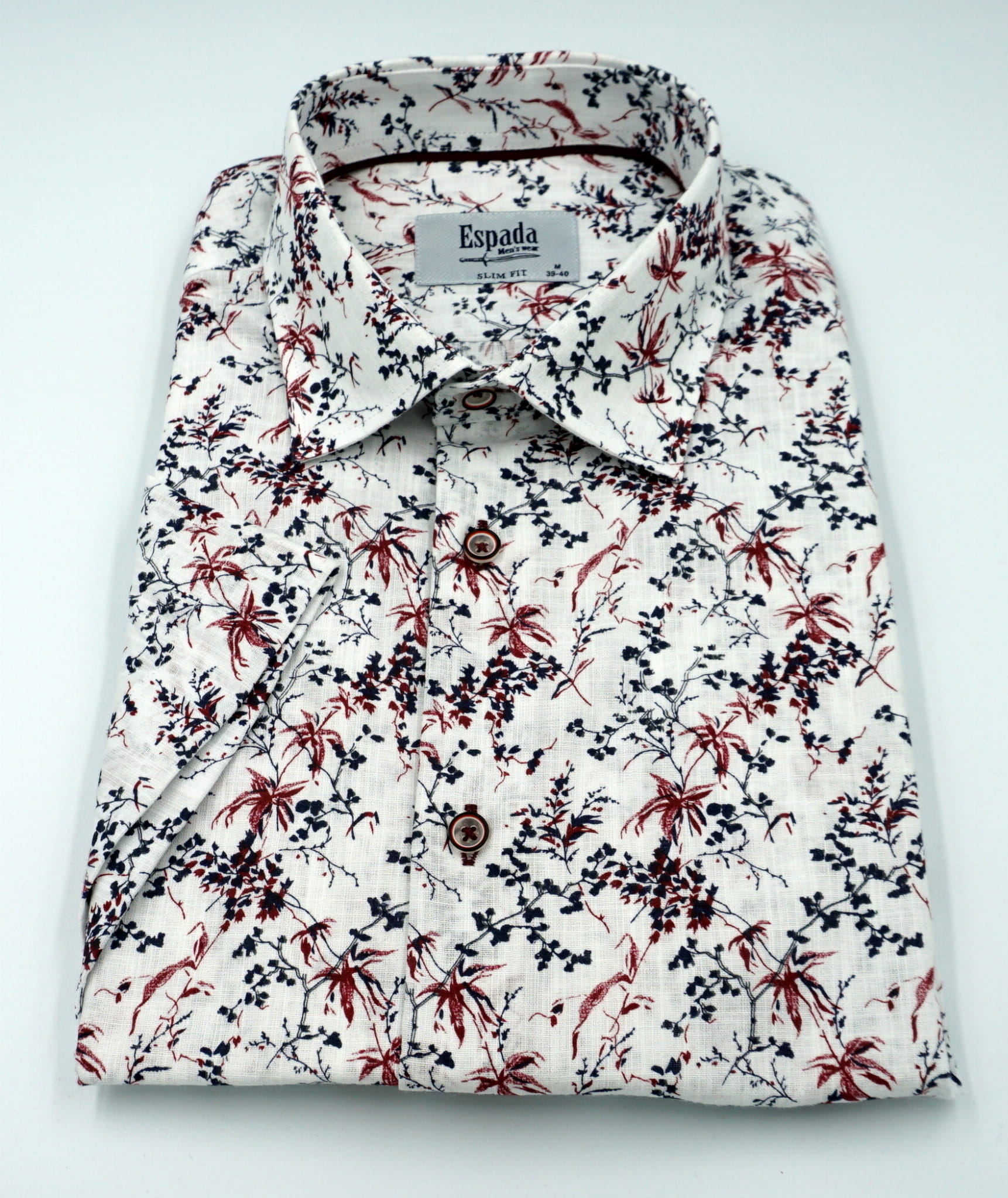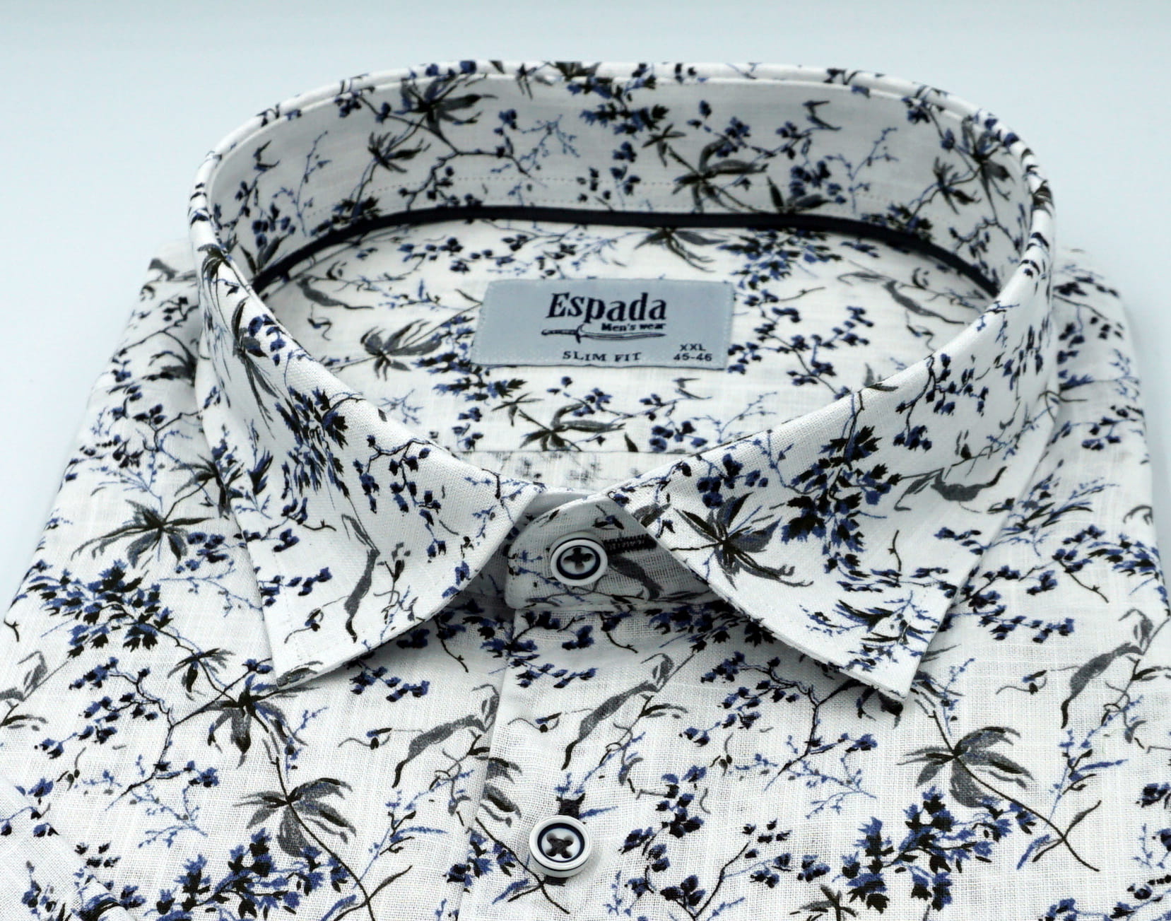 Koszula męska krótki rękaw a'la len w kwiaty slim fit