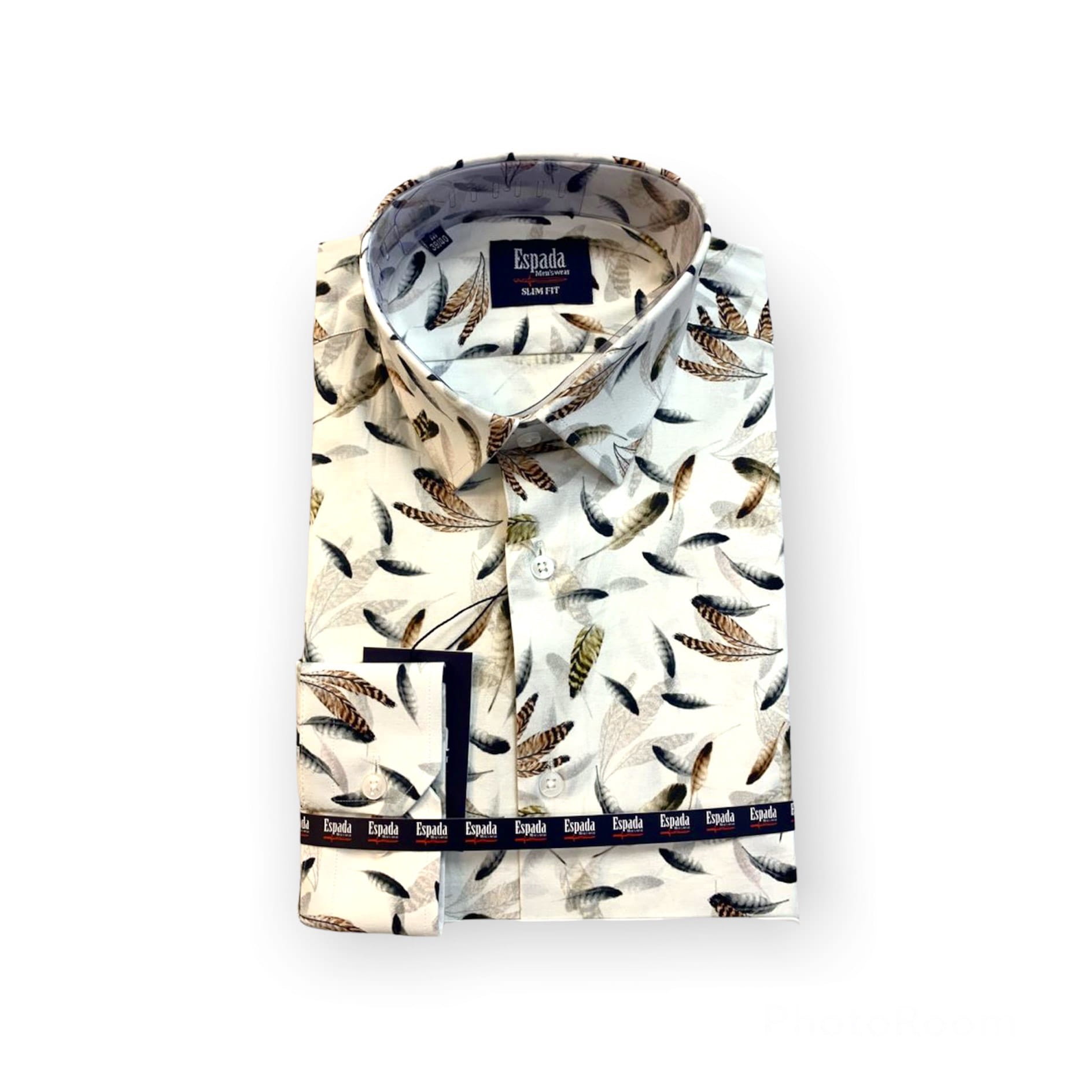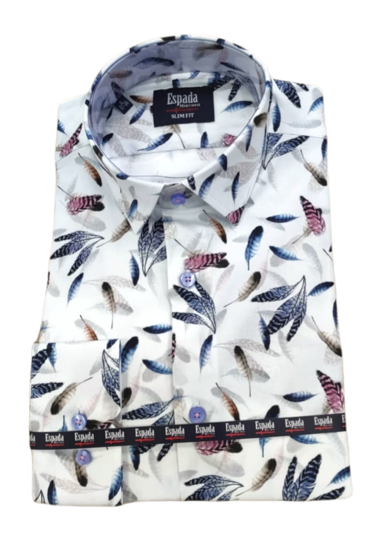 Koszula męska wzór piórka długi rękaw SLIM FIT