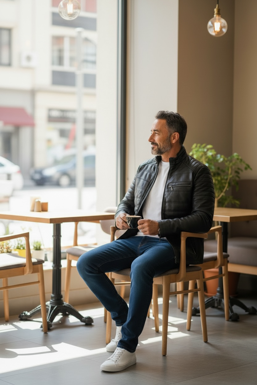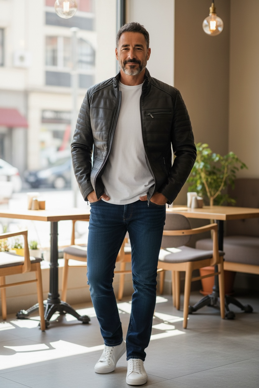 Męska kurtka ze skóry naturalnej.
