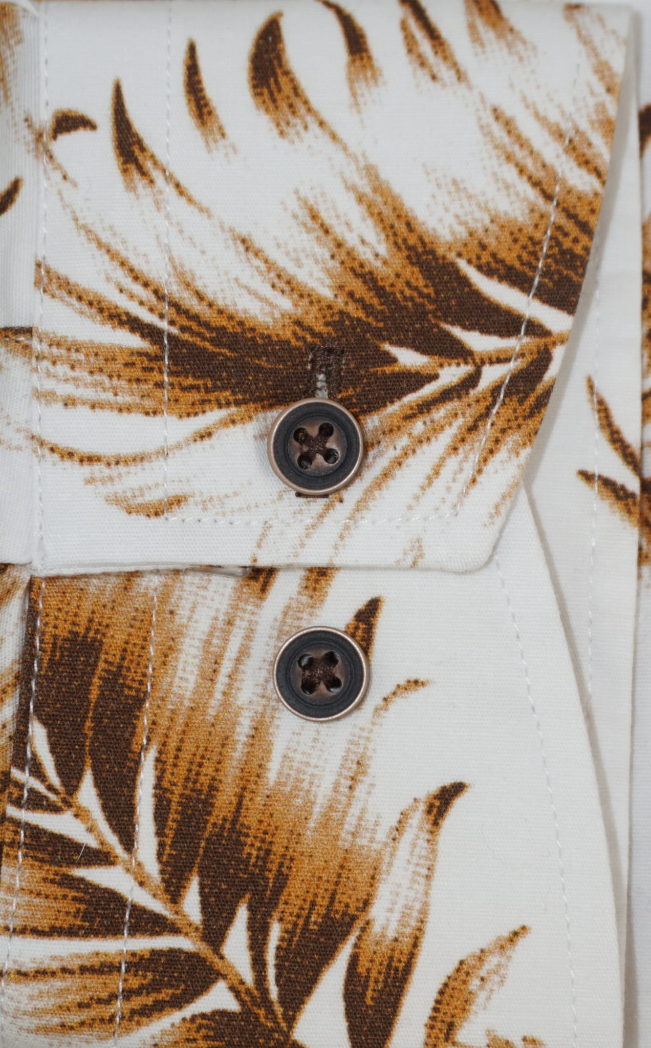Męska koszula długi rękaw SLIM FIT brązowe liście palmy
