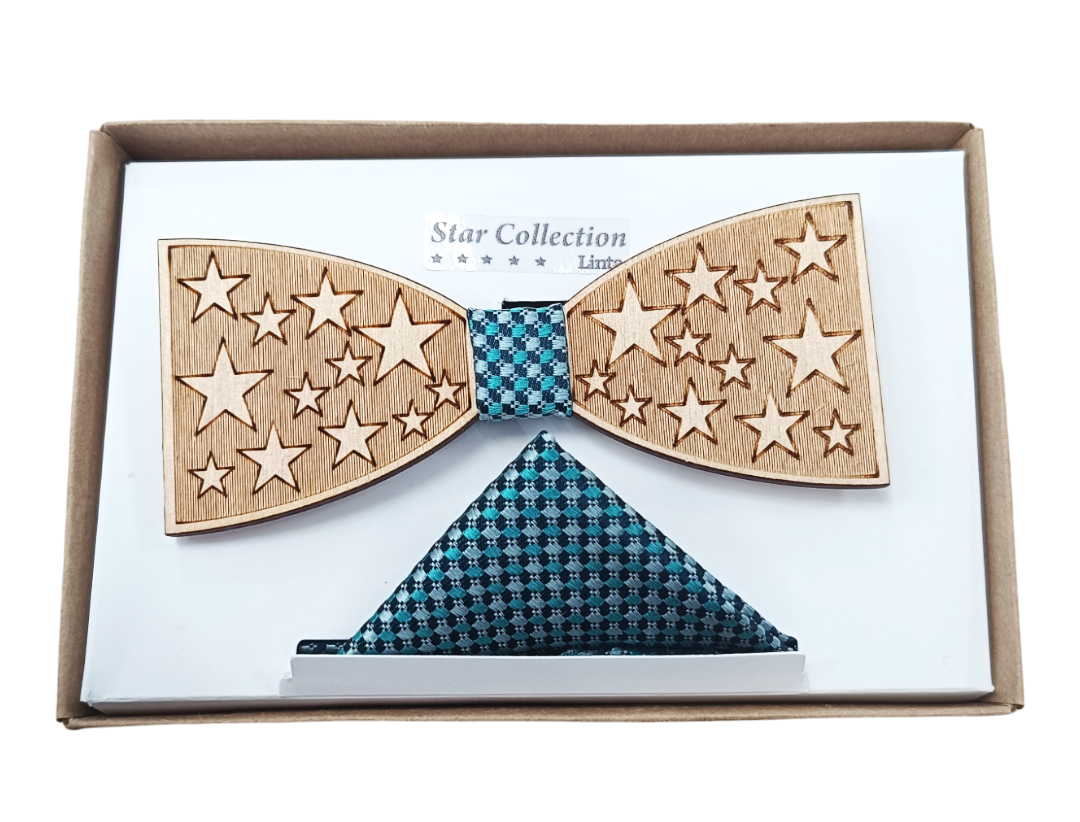 Mucha w zestawie z poszetką, zapakowana w pudełko.