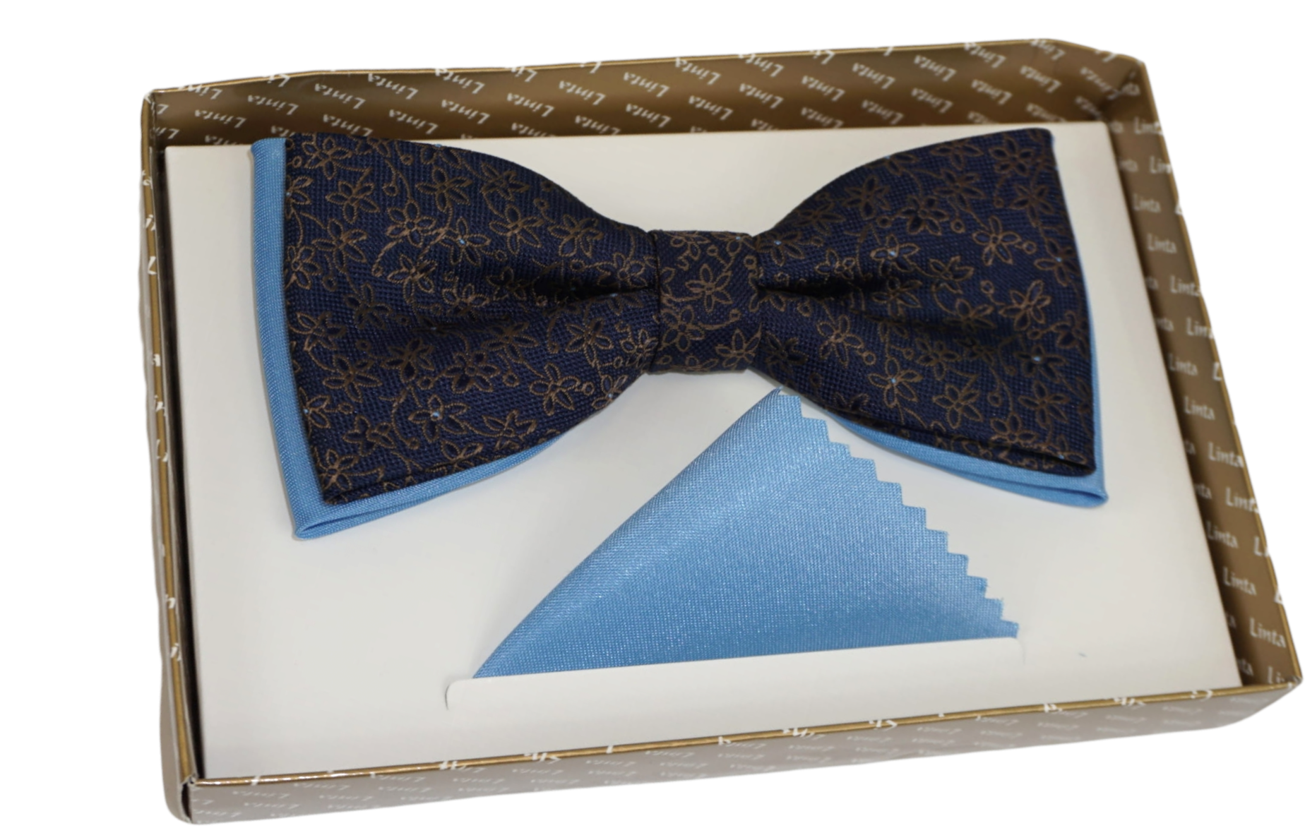 Mucha w zestawie z poszetką, zapakowana w pudełko.