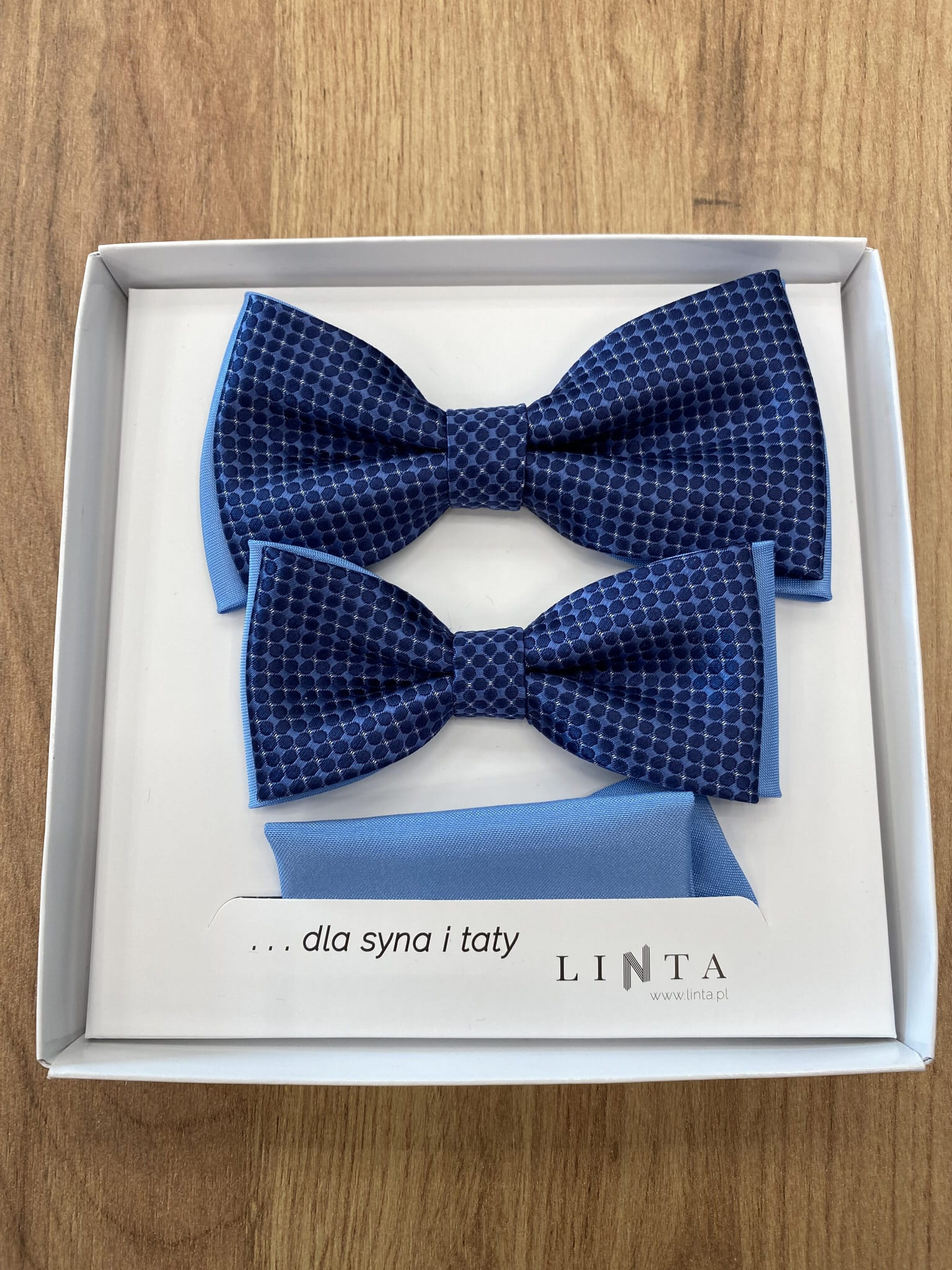 Muchy TATA SYN dwukolorowe niebieskie w granatowe kółka i kropki