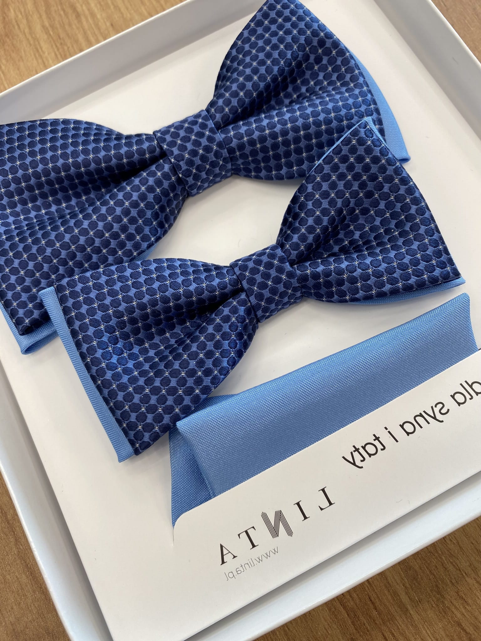 Muchy w zestawie z poszetką, zapakowane w pudełko.