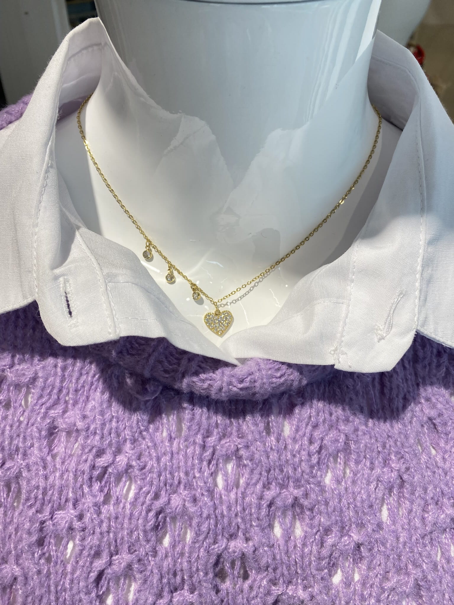 Naszyjnik trzy cyrkonie i serce wysadzane cyrkoniami