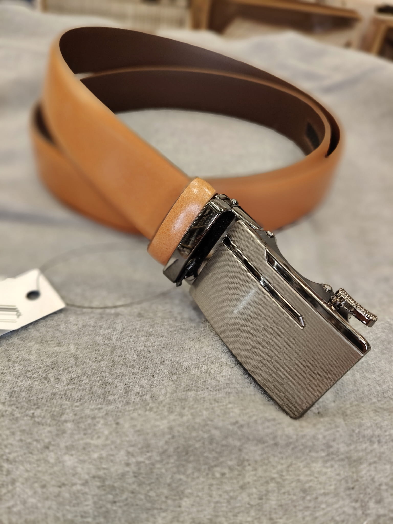 Pasek męski gładki skóra naturalna klamra srebrna i paskami