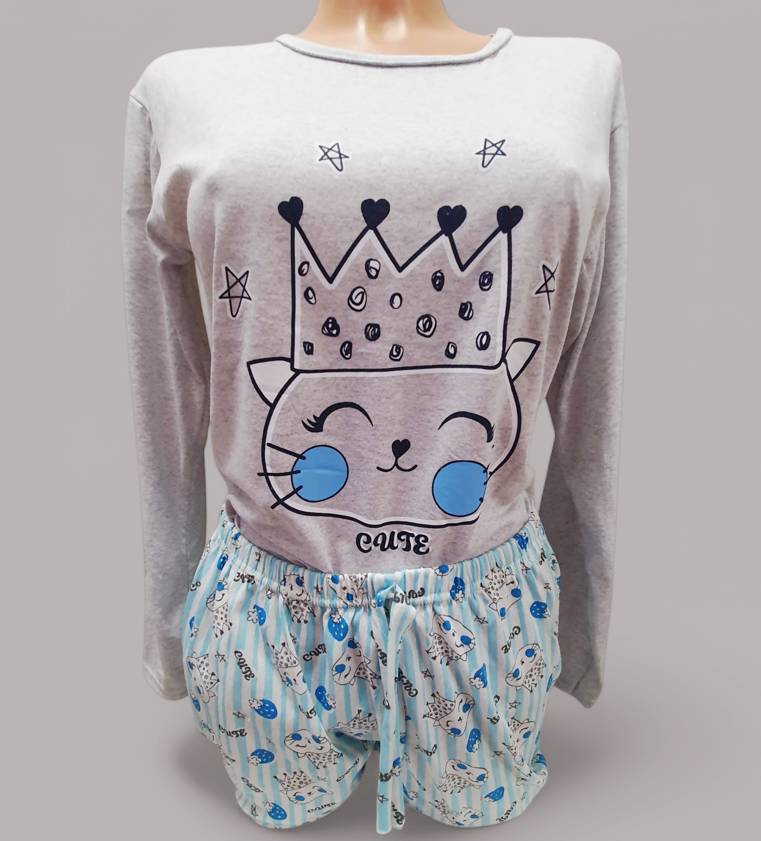 Piżama damska spodnie plus koszulka długi rękaw wzór KOT