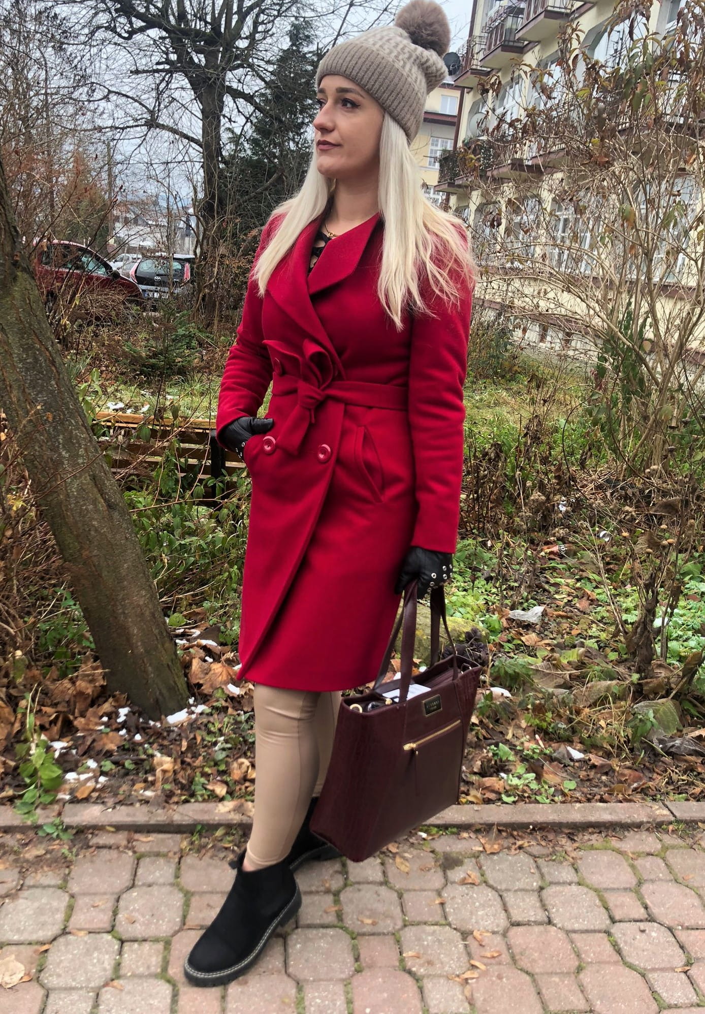 Płaszcz damski dwurzędowy TULIPAN z wiązaniem
