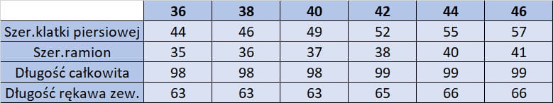 Tabela wymiarów w galerii zdjęć.
