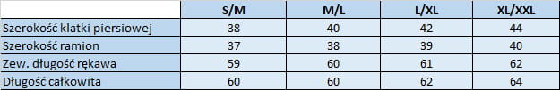 Tabela rozmiarów w galerii zdjęć.