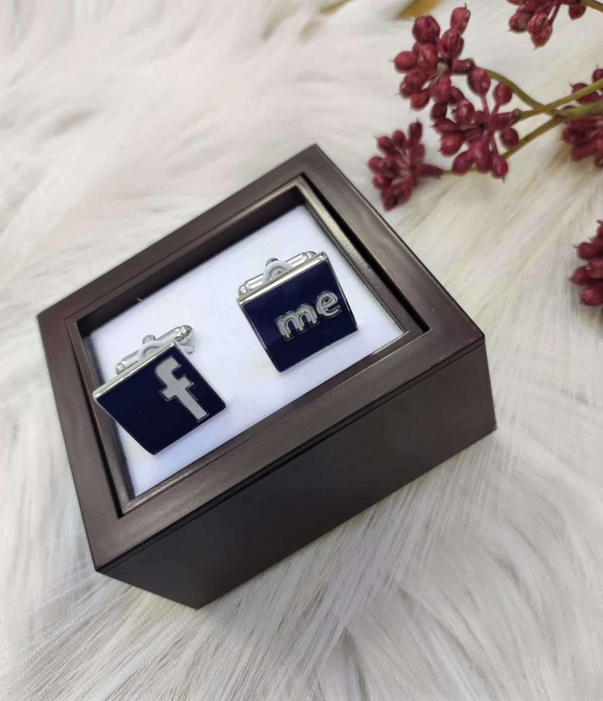 Spinki do mankietów srebrne kwadraty znaczek FACEBOOK