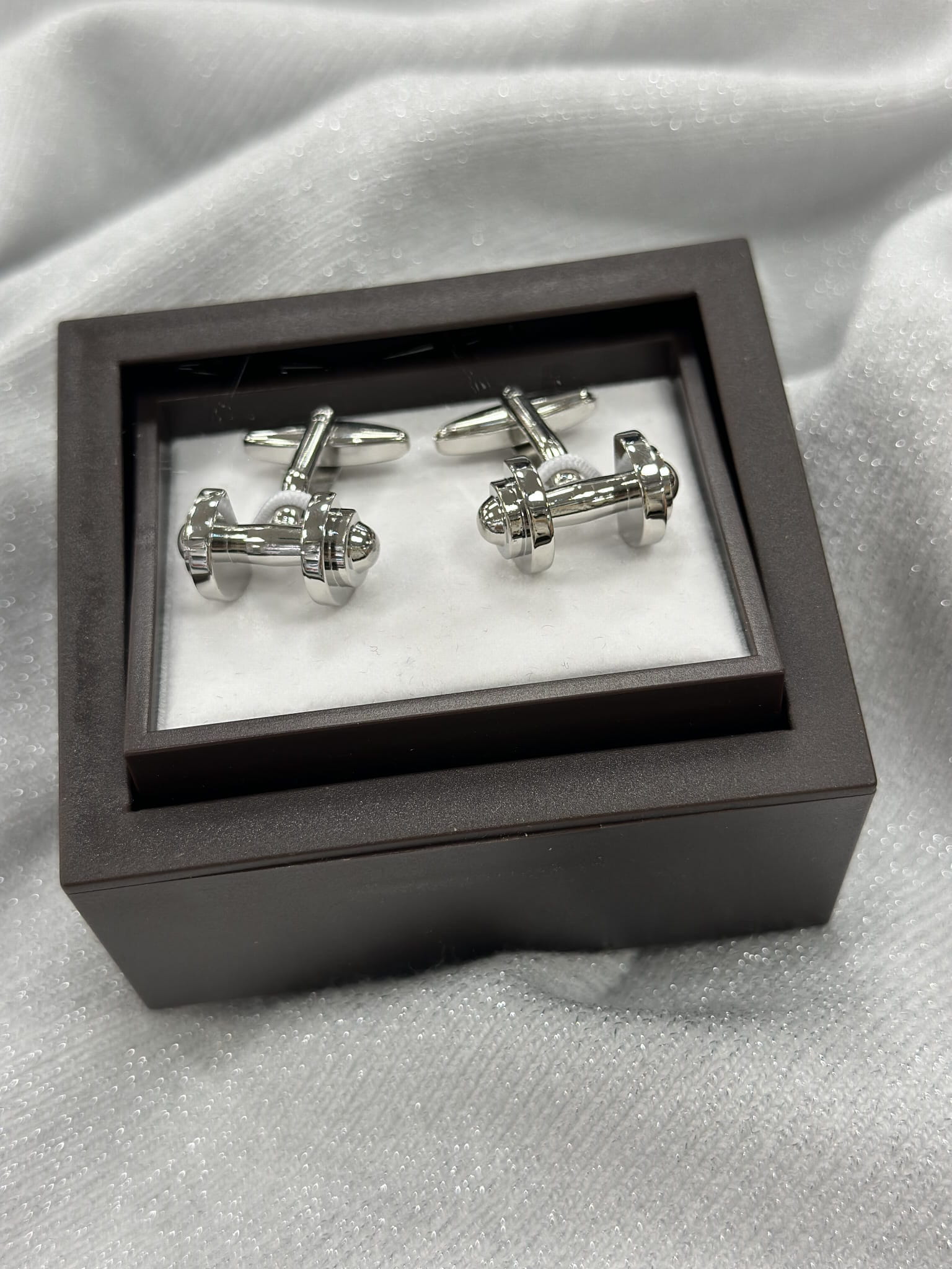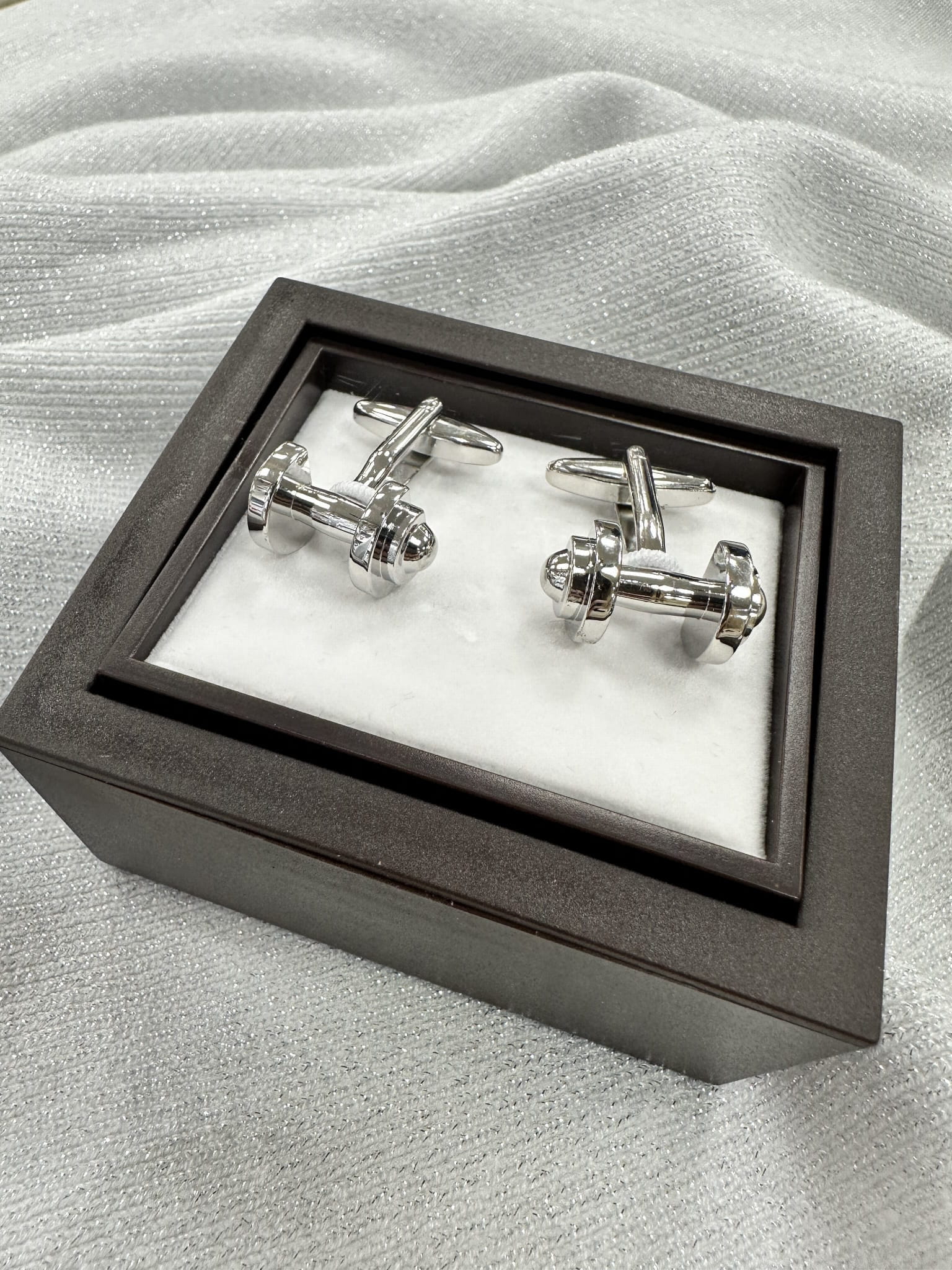 Spinki do mankietów wzór srebrne ciężarki