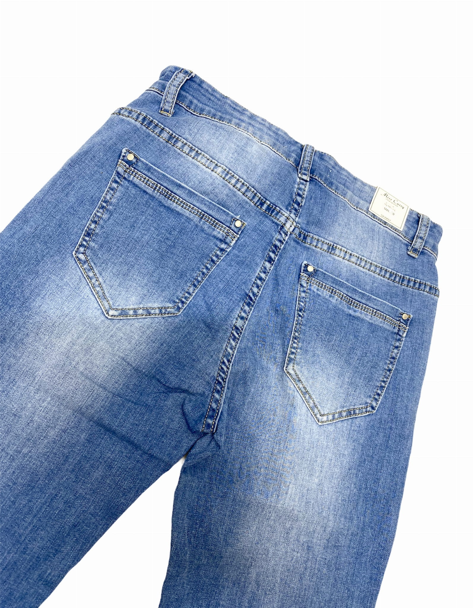 Spodnie damskie jeans z delikatnymi przetarciami.