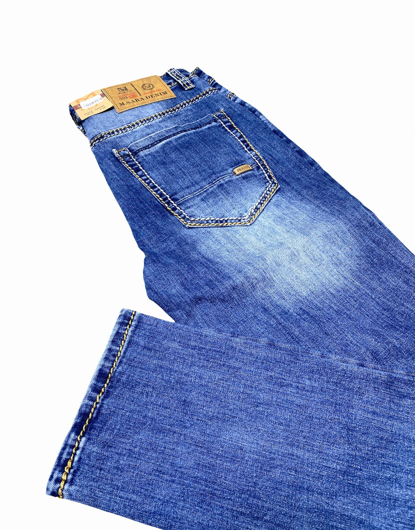 Spodnie męskie jeans przeszycia grubą nicią