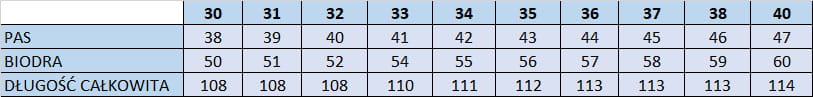 *Tabela rozmiarów w galerii zdjęć.