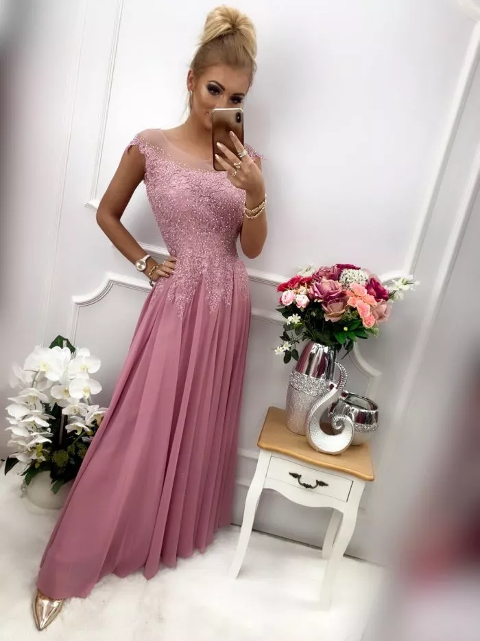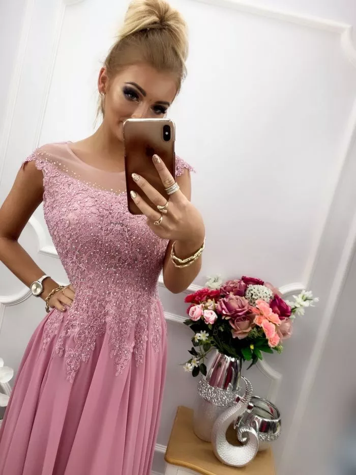 Sukienka AIDA długa szyfonowa z cyrkoniami