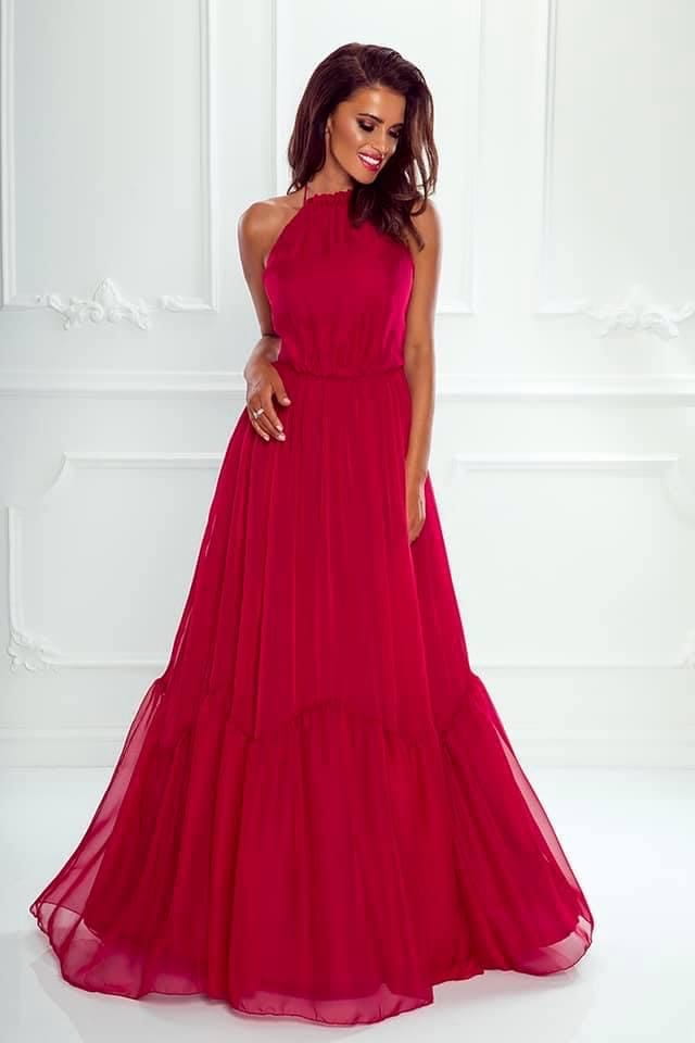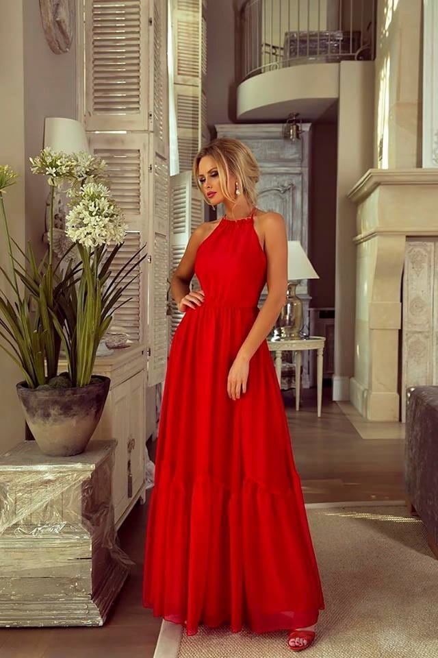 Odkryte ramiona i plecy, z tyłu zapinana na suwak.