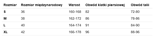 Tabela rozmiarów w galerii zdjęć.