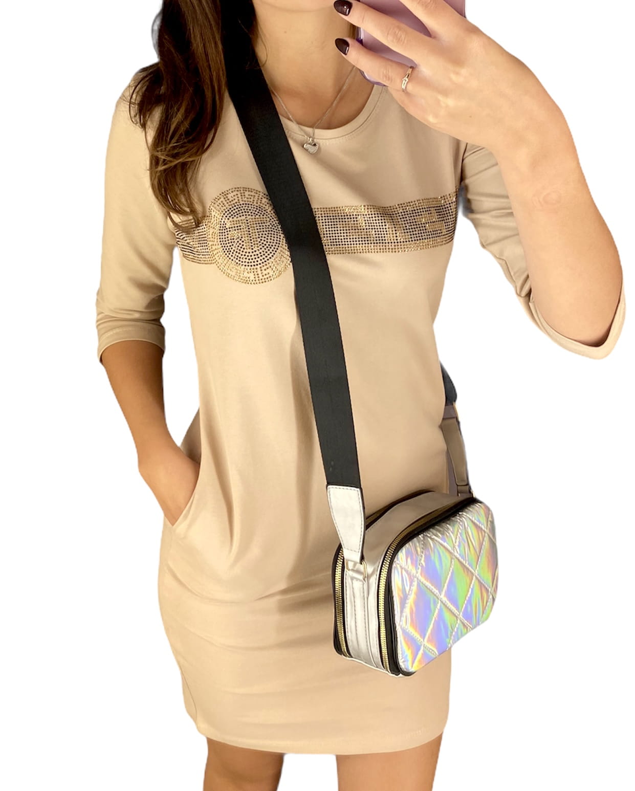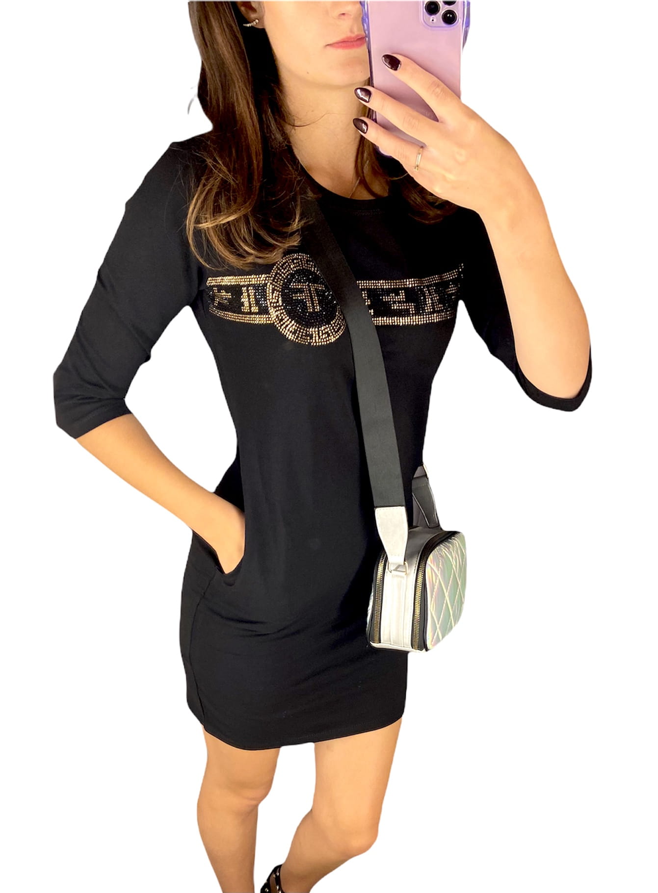 Świetna bawełniana sukienka z aplikacją cyrkonii.