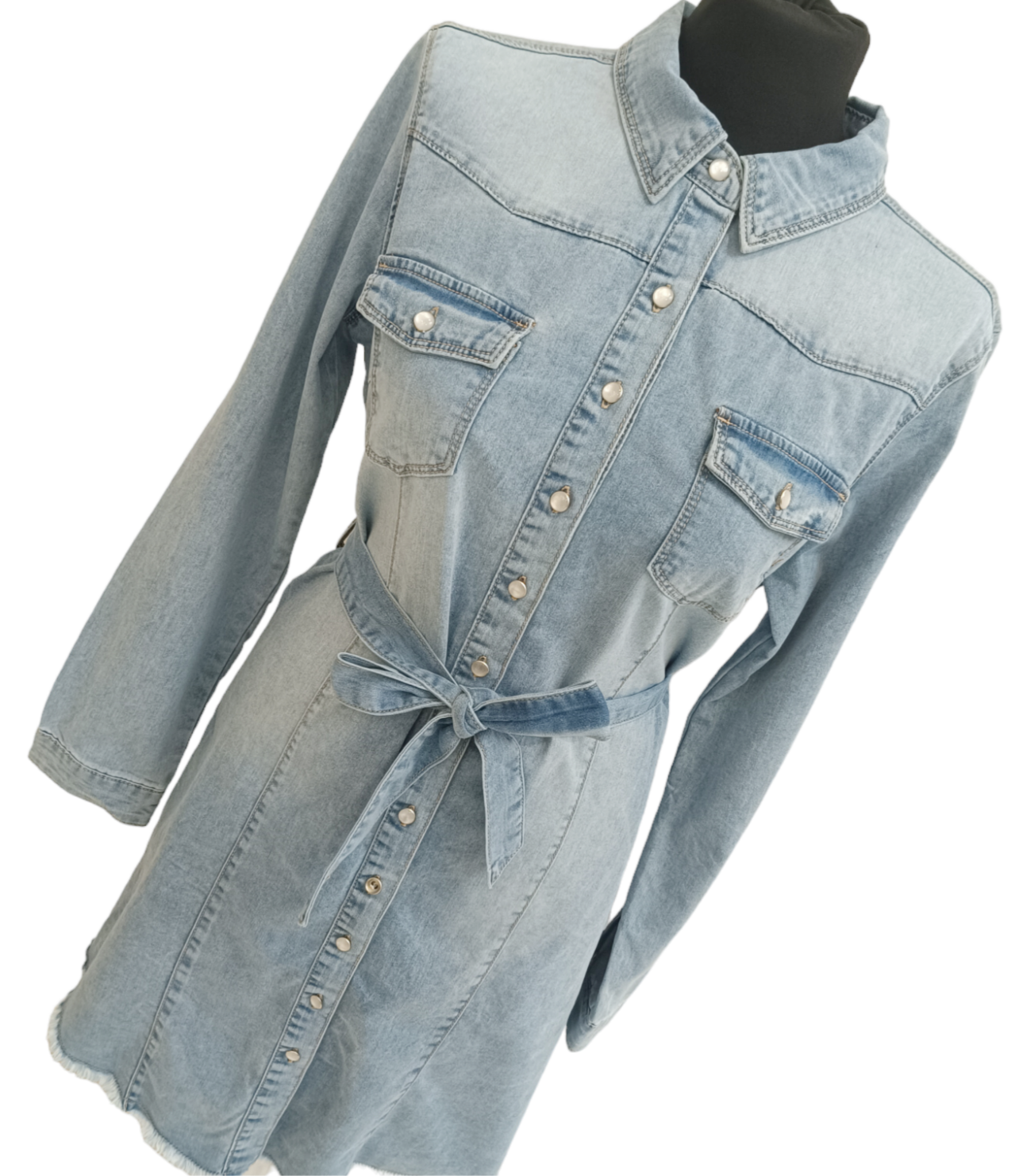Sukienka jeans z paseczkiem.