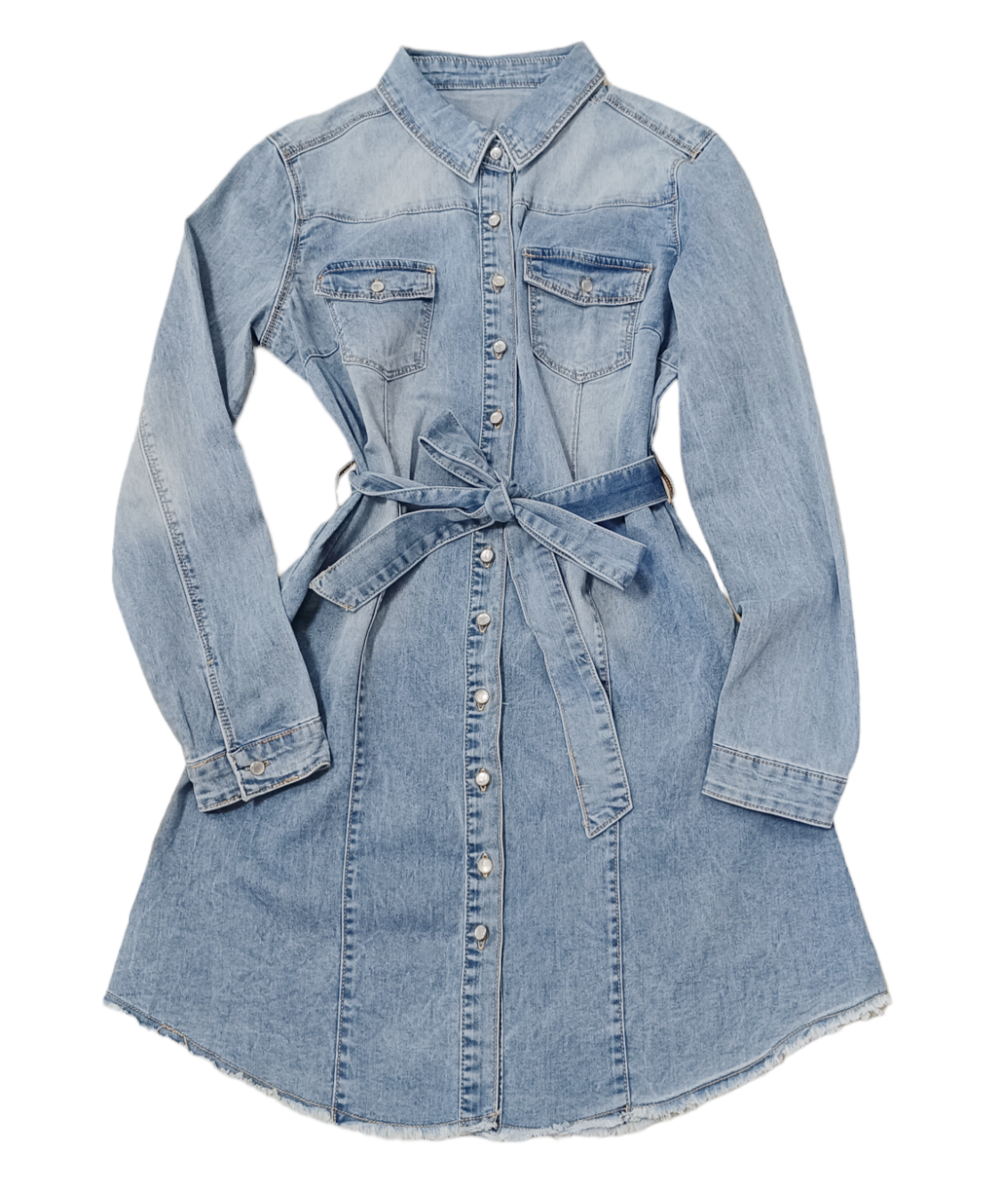 Fason o prostym kroju, rozpinana na całej długości, dodatkowy pasek by podkreślić talię.