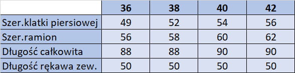 Fason o prostym kroju, rozpinana na całej długości, dodatkowy pasek by podkreślić talię.