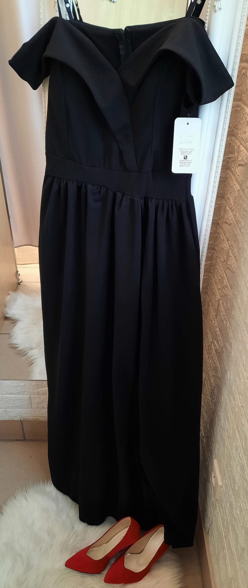 Sukienka maxi opadające szelki z rozcięciem na nogę