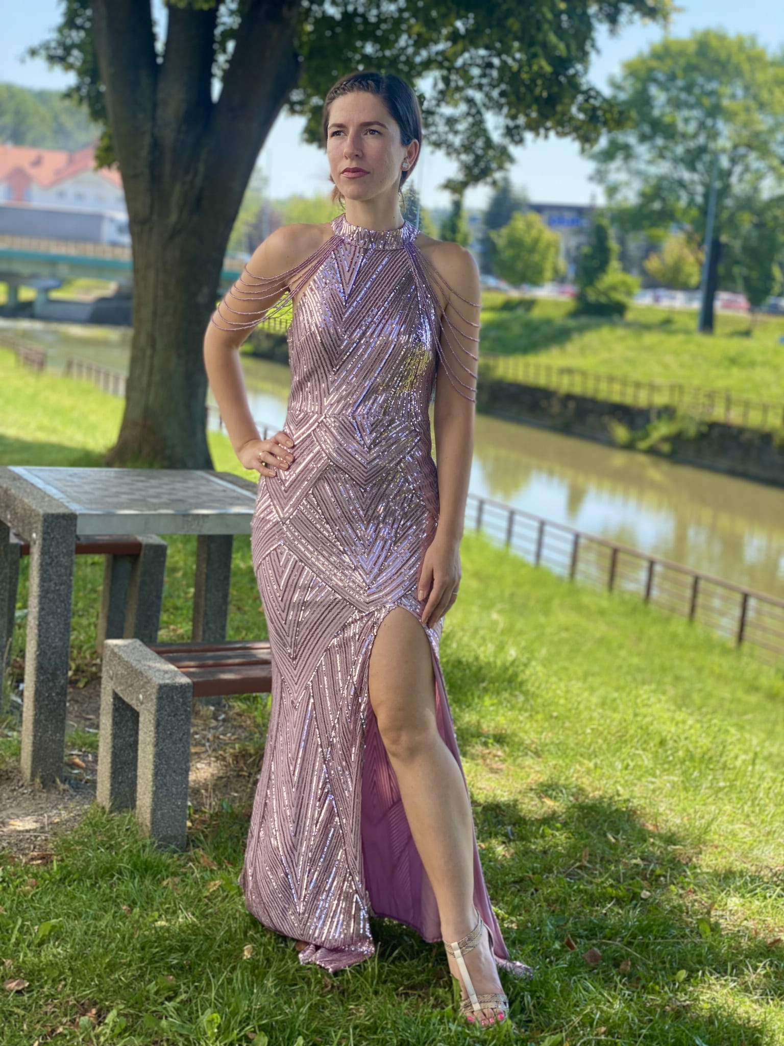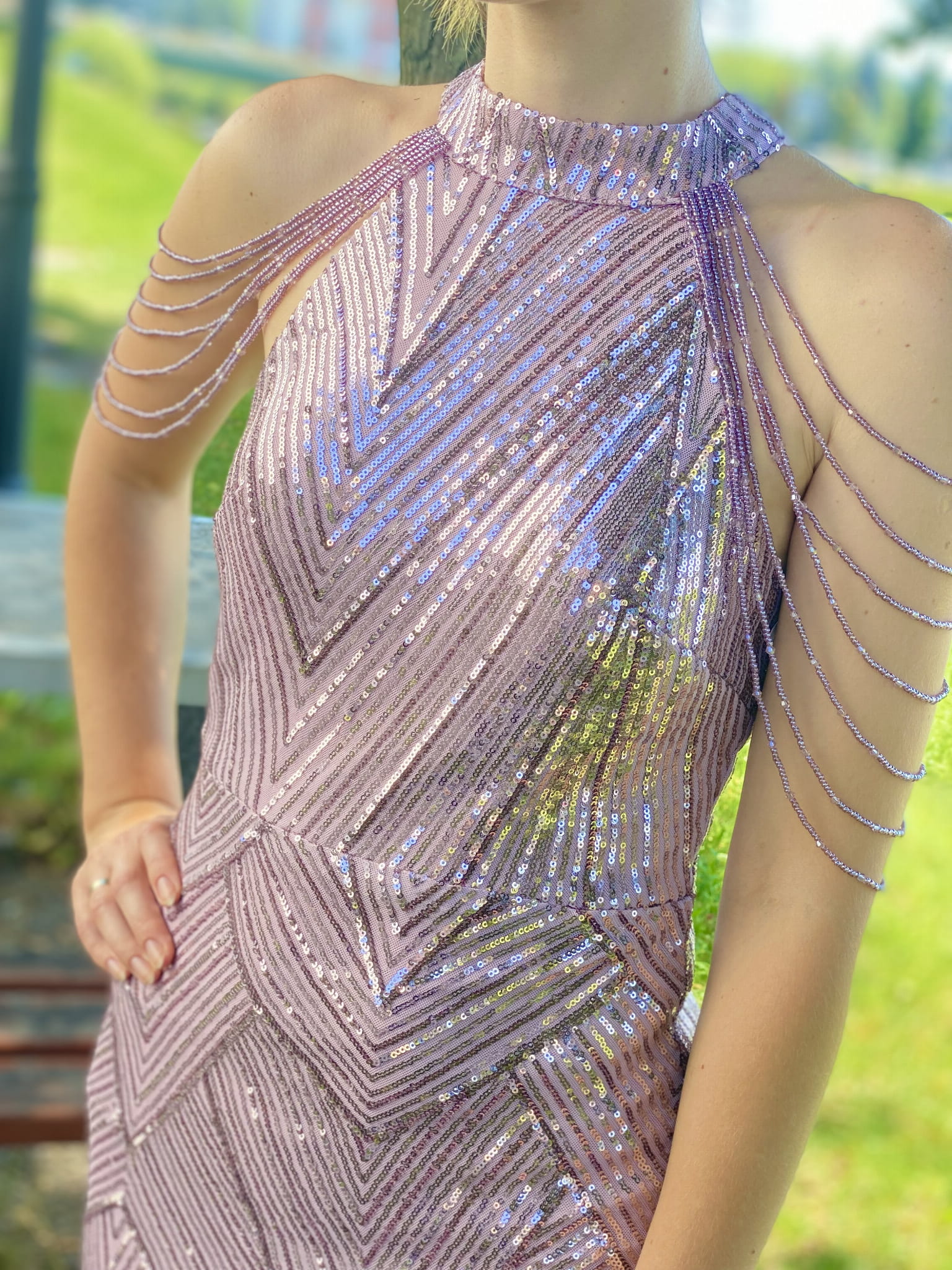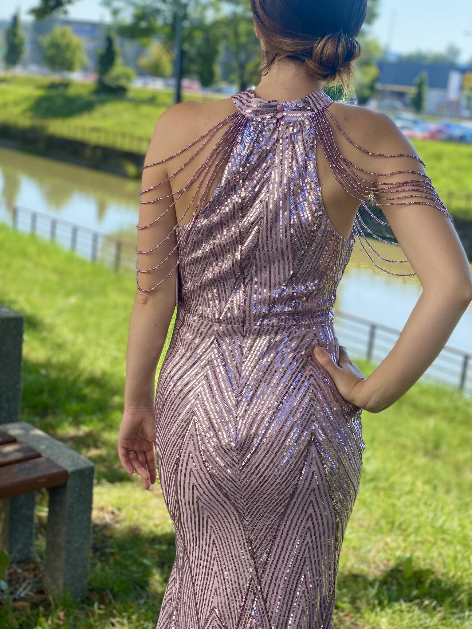 Sukienka maxi z cekinami i koralikami na ramionach MOJITO BIS