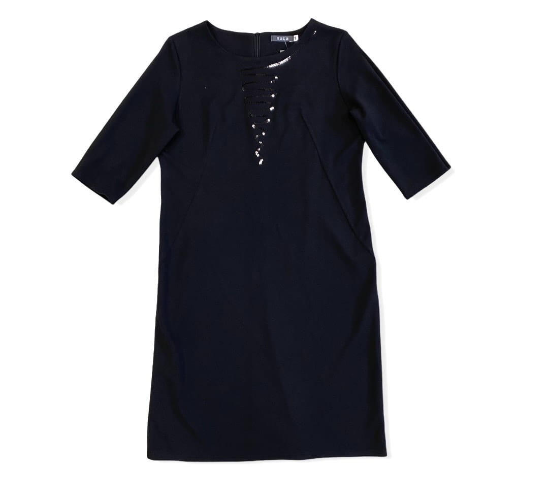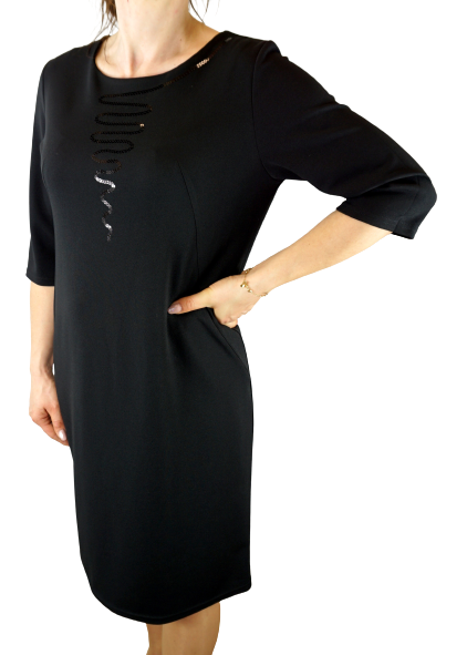 Elegancka ołówkowa sukienka z cekinową aplikacją.