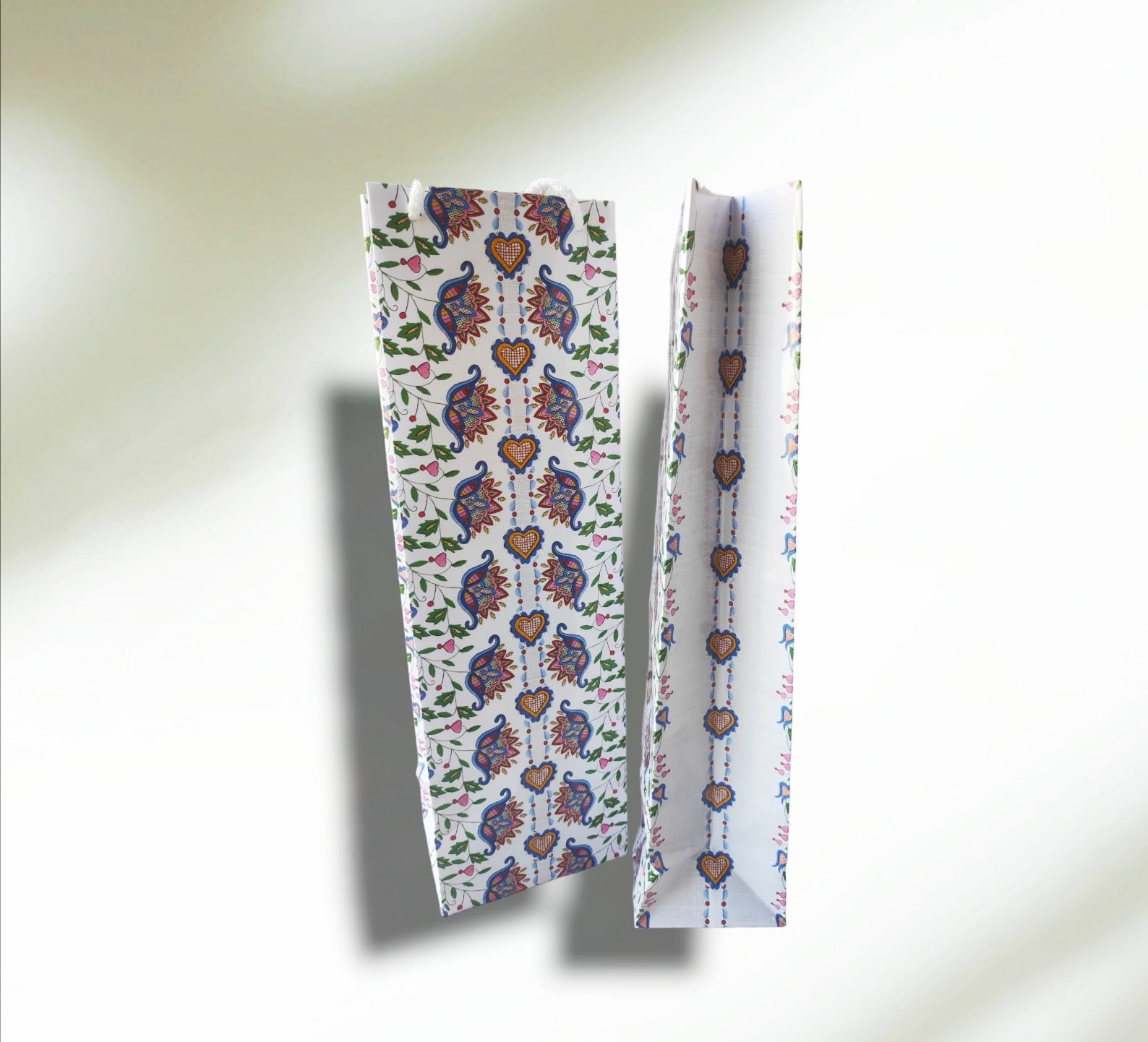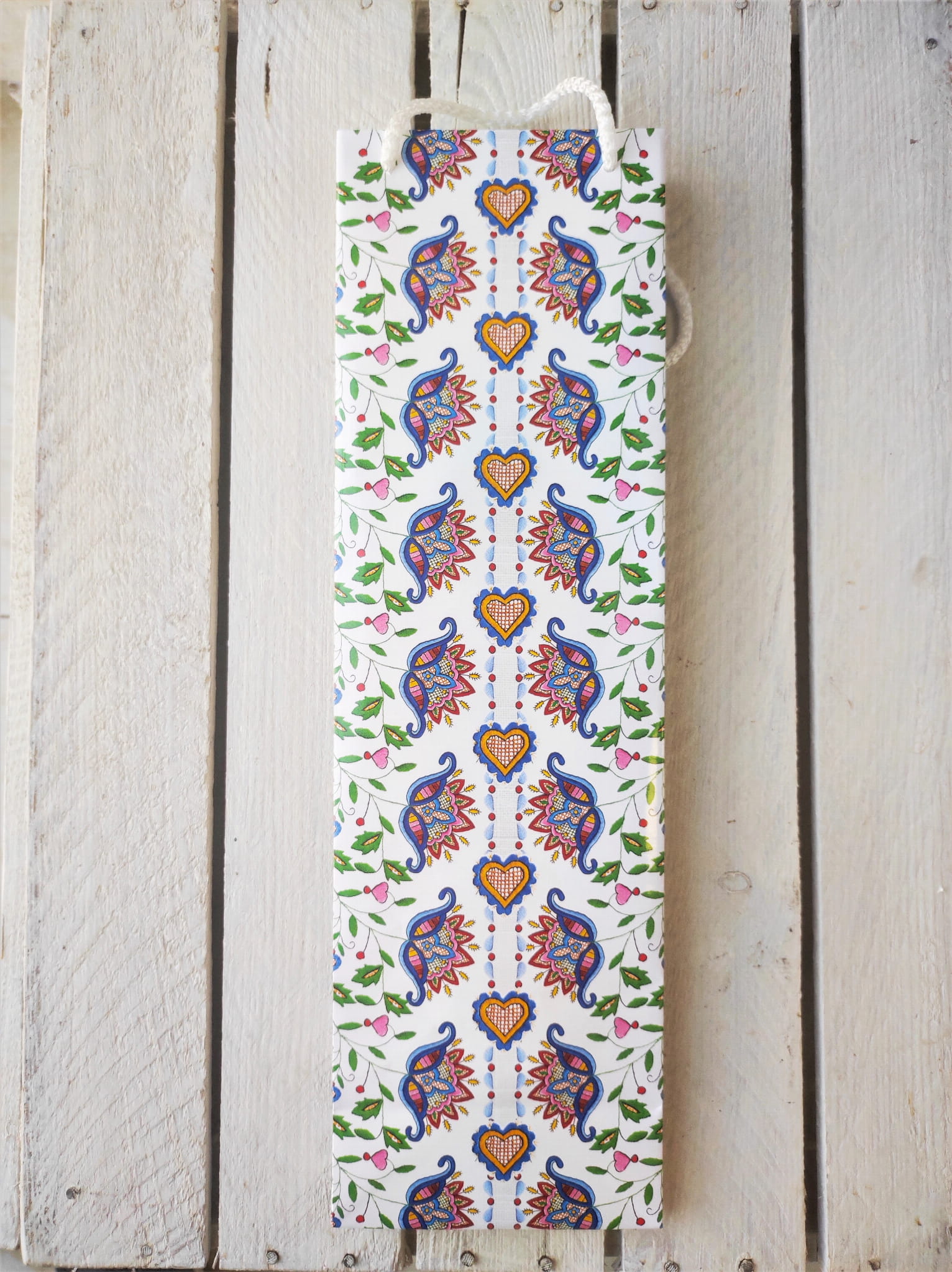 Torebka przentowa folk biała wzór kwiaty 12x40x9 cm